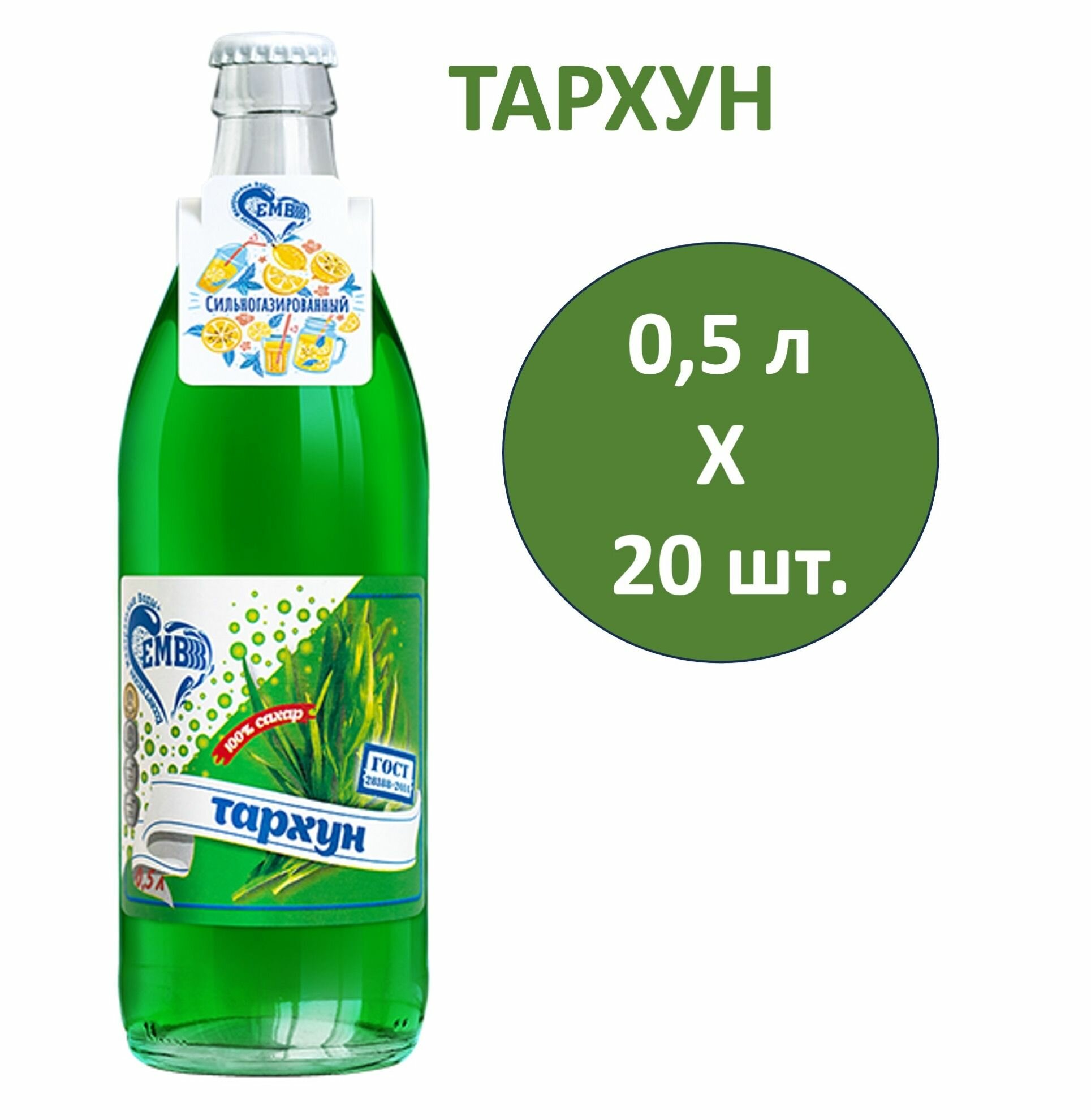Купить Лимонад ЕМВ Тархун 0,5 л х 20 бутылок, сильногазированная, стеклянная бутылка