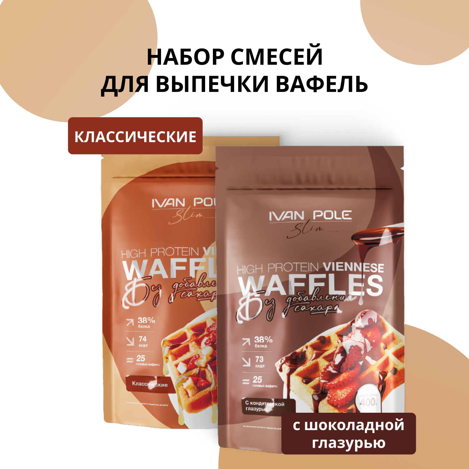 Купить Набор 2 шт Протеиновые Венские вафли с шоколадом и классические, смесь для выпечки, Иван-поле, 2 шт по 400г