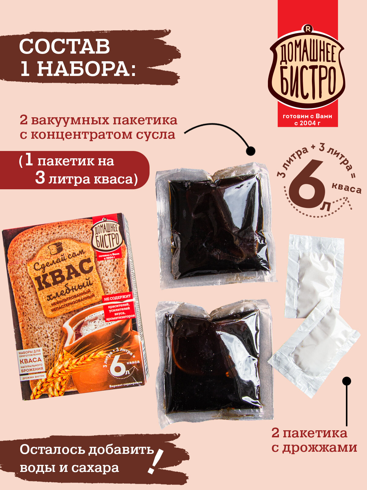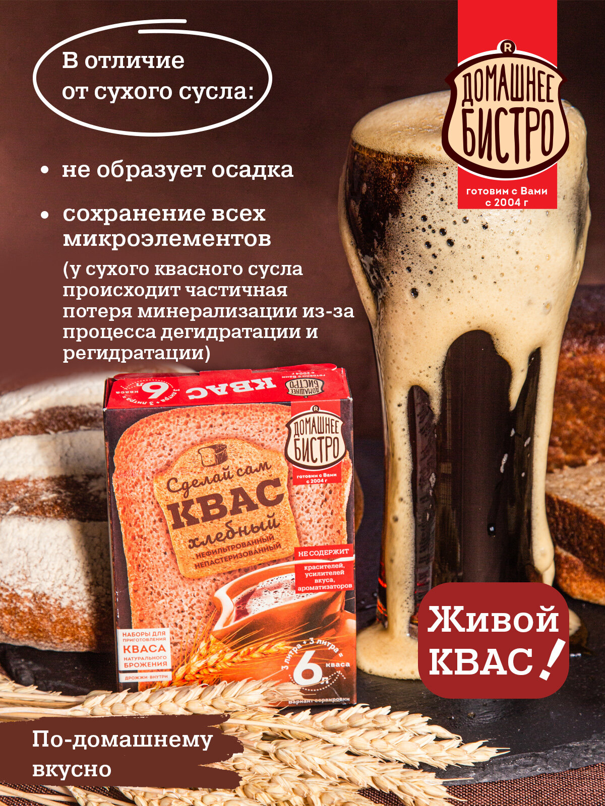 Сухой квас "Домашнее Бистро", натуральный, без ГМО, 124г, 2шт интересное: