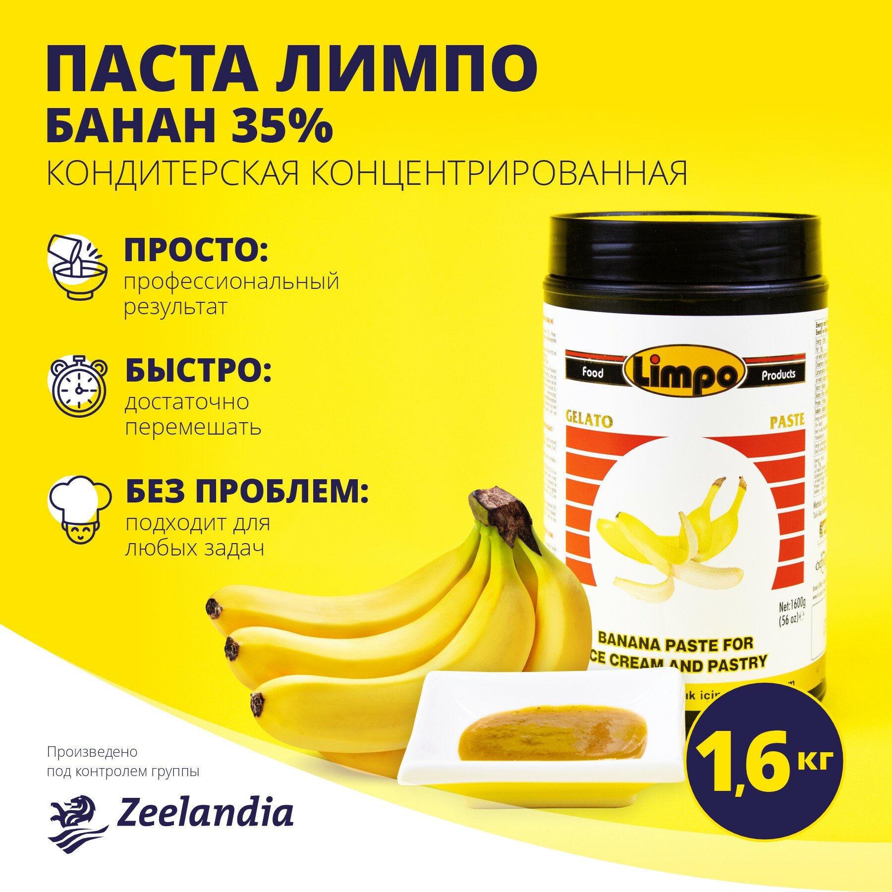 Купить Паста кондитерская / десертная Банан Лимпо, концентрированная (1:30), 1.6 кг, Зиландия