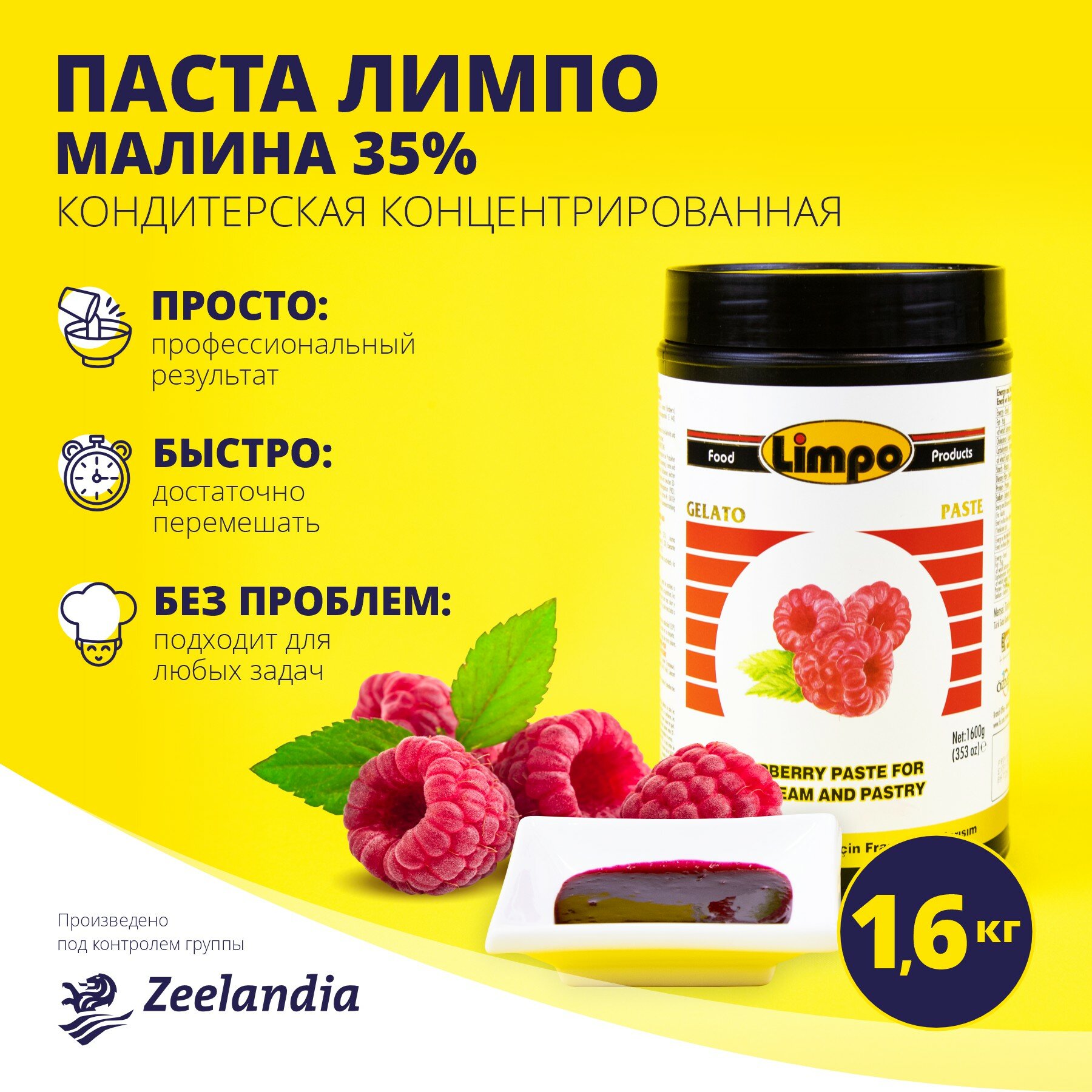 Паста Лимпо десертная Малина, высококонцентрированная (1:30), 1.6 кг, Зиландия