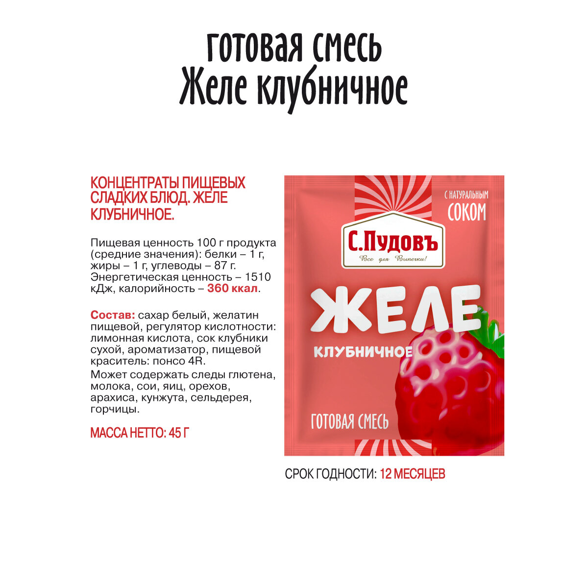Готовая смесь "Желе клубничное",С. Пудовъ, фруктовое желе в пакетике, 45 г