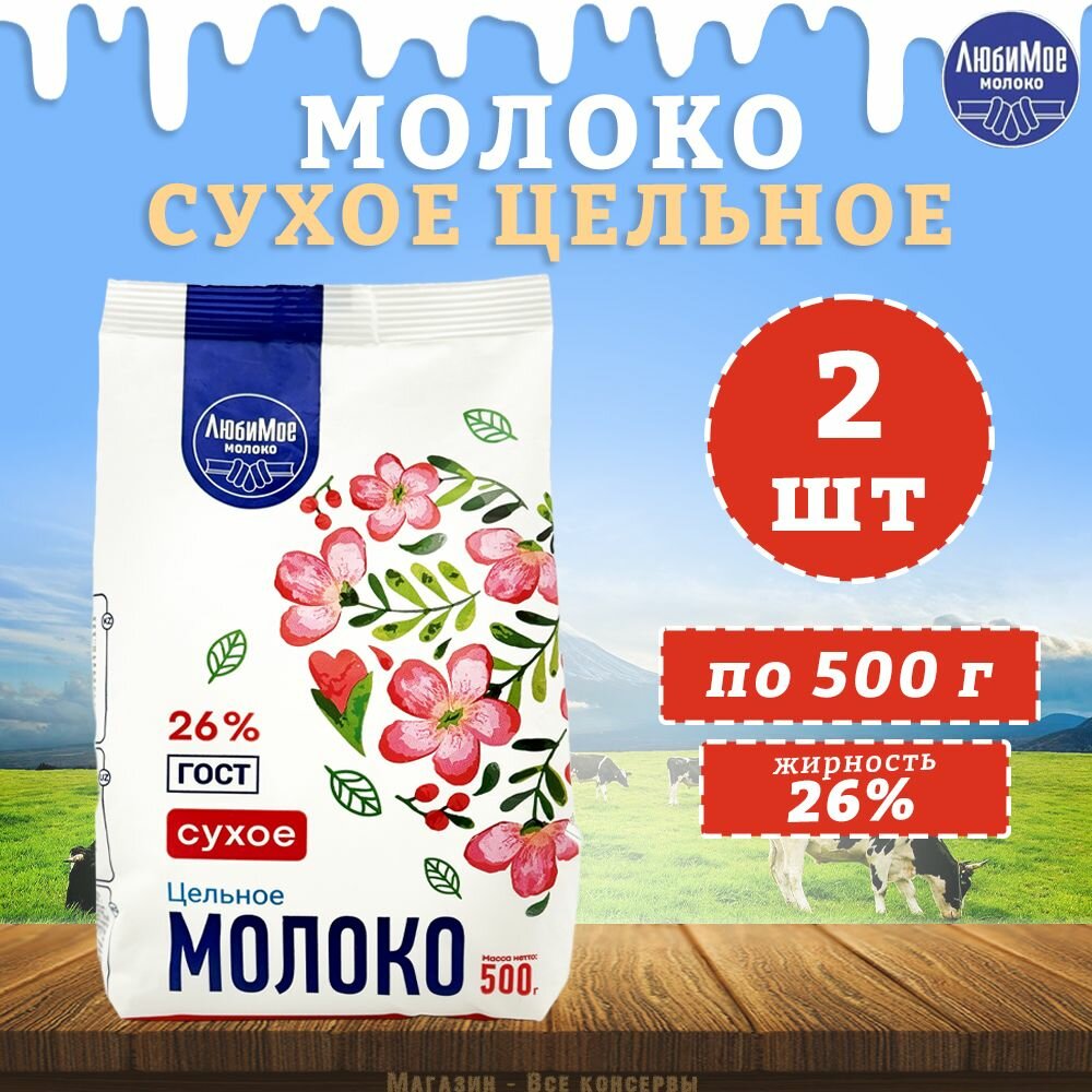 Купить Молоко сухое цельное, ГОСТ, 26%, ЛюбиМое, 2 шт. по 500 г