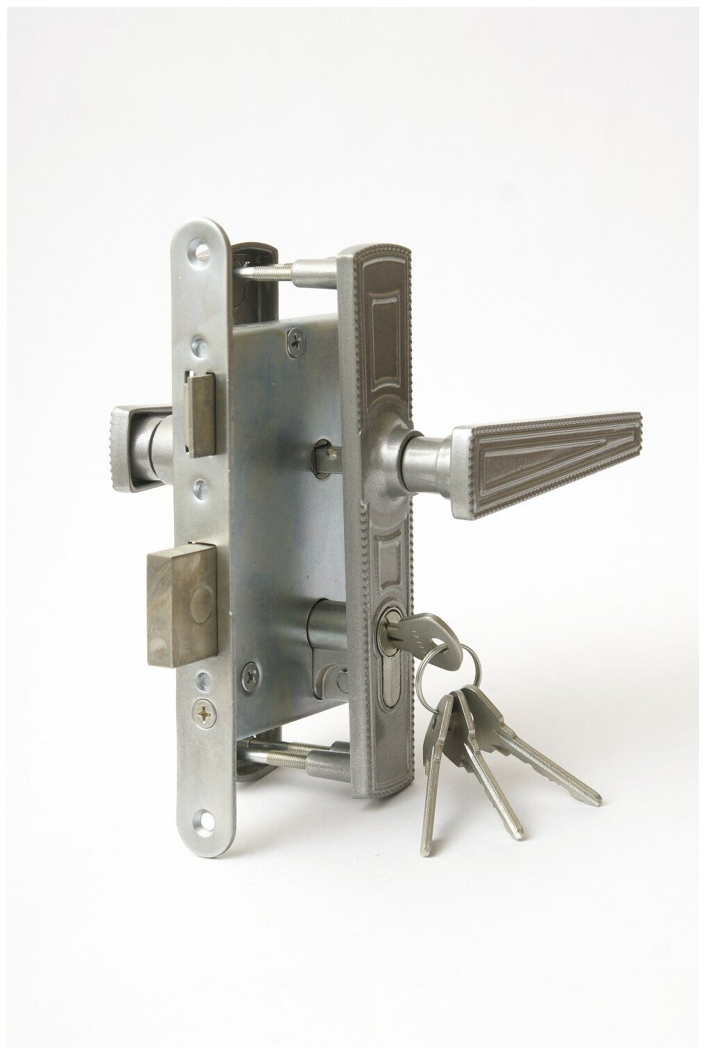 Замок врезной Зенит цилиндровый с защёлкой в комплекте с ручкой ЗВ4-3.01 (серебро), 4 ключа