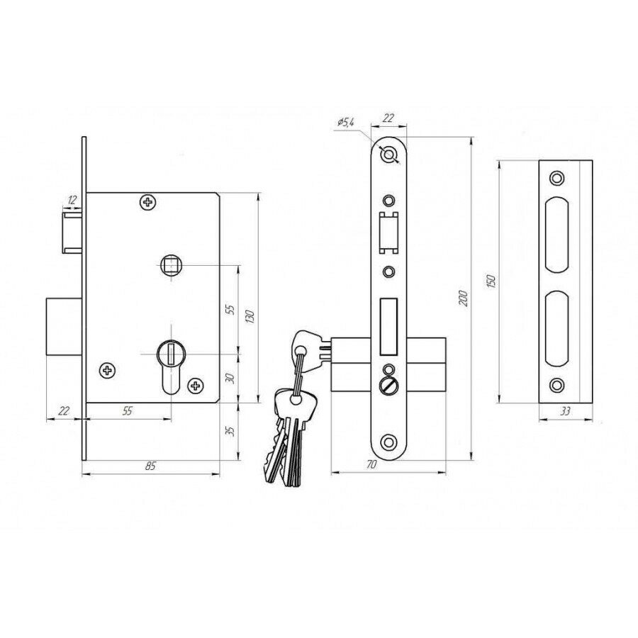 Замок врезной Зенит ЗВ 4-3.01, черный