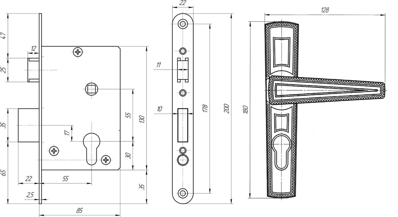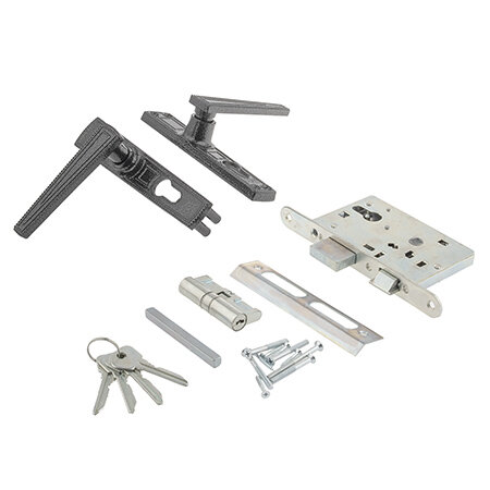 Замок врезной Зенит цилиндровый с защёлкой в комплекте с ручкой ЗВ4-3.01 (серебро), 4 ключа