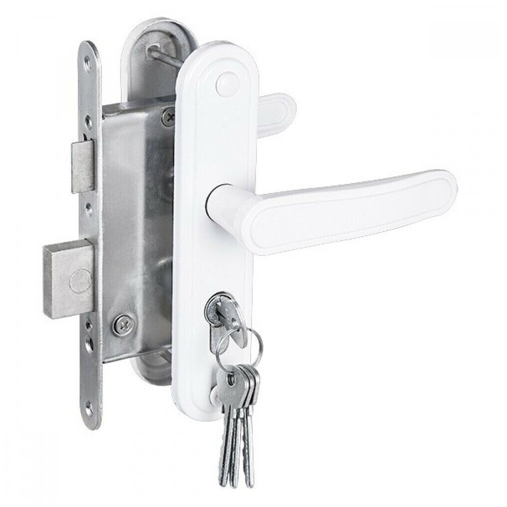 Замок врезной цилиндровый с защёлкой в комплекте с ручкой Зенит (замки) зенит ЗВ4-3.01 (белый), 4 кл.