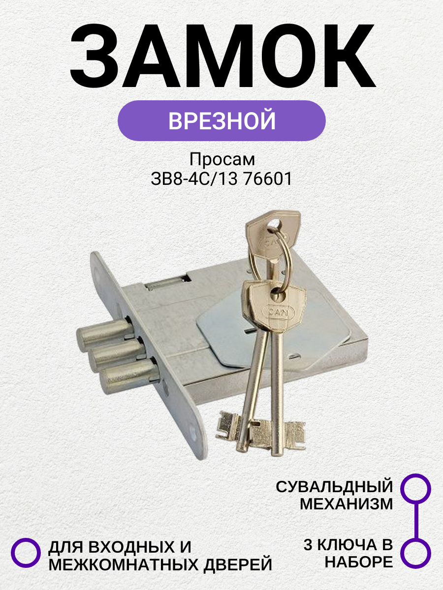 Купить Замок врезной Просам ЗВ8-4С/13 76601 (без ответной планки)