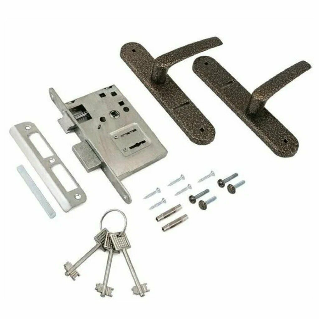 Врезной замок КНР "Птимаш", сталь, цвет Медь, с ручкой, для деревянной двери, 4 ключа