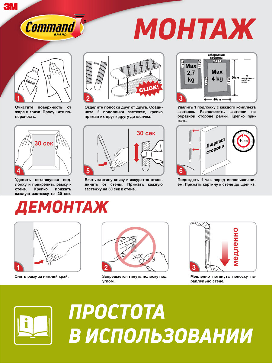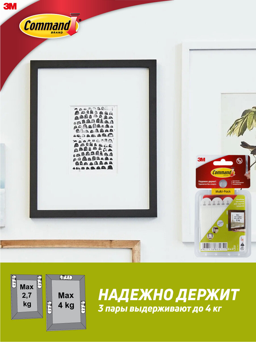 Застежки для картин самоклеющиеся Command 17201-2, белые средние 8 пар интересное: