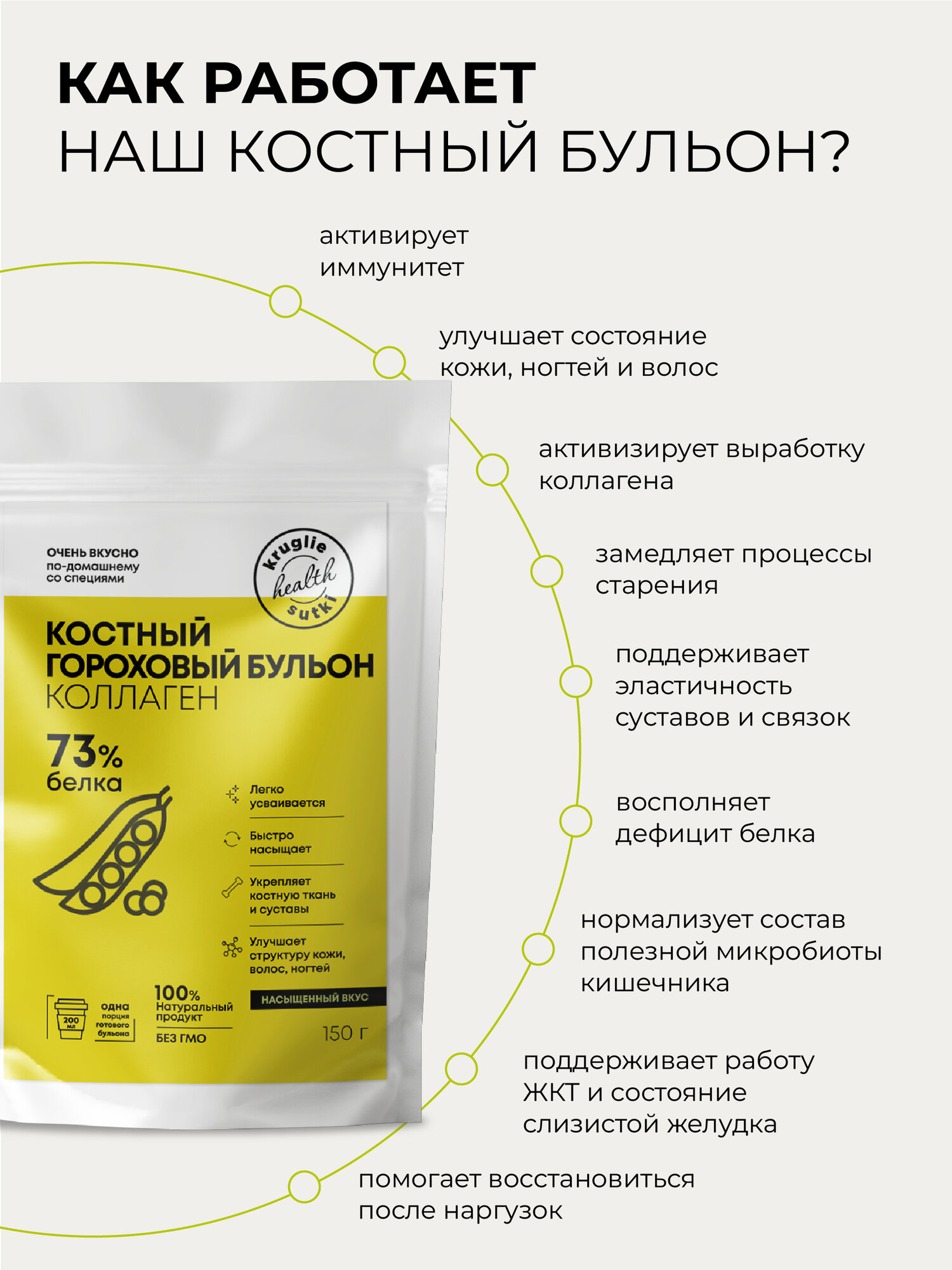 Костный бульон Круглые Сутки, с коллагеном, гороховый вкус, 15 порций интересное: