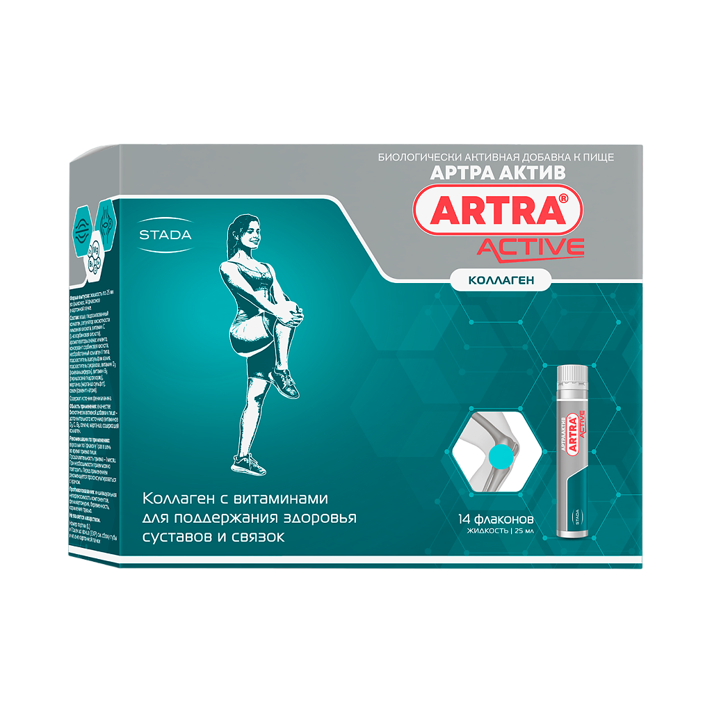 Купить Артра Актив, укрепление суставов и связок, коллаген, витамины, 14 флаконов по 25 мл