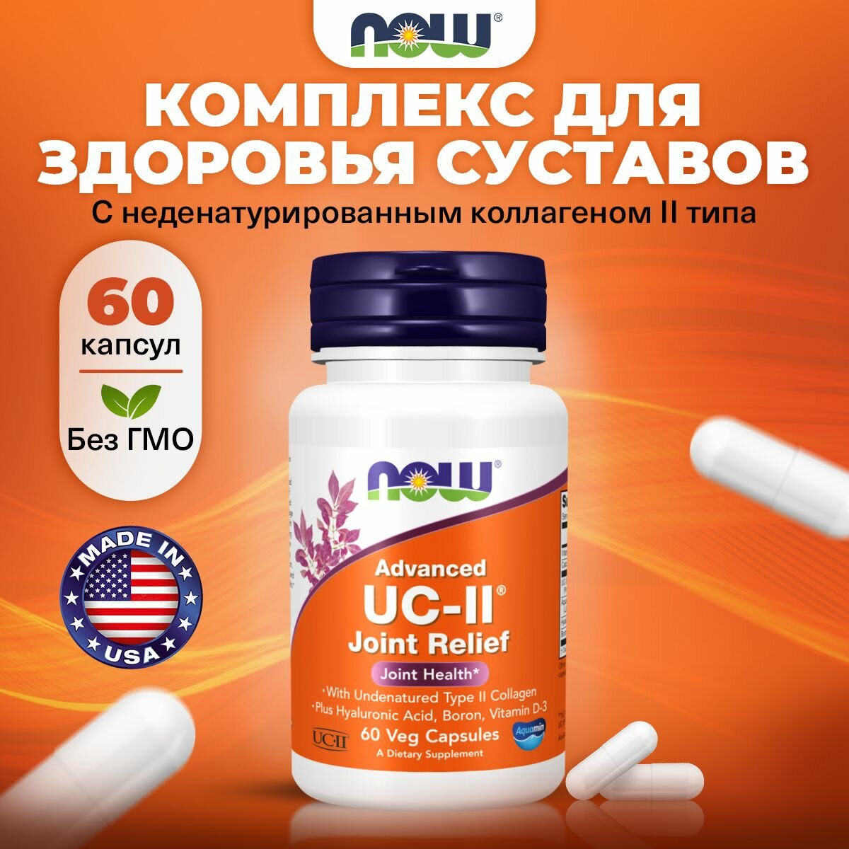 NOW ADVANCED UC-II(R) JOINT RELIEF (коллаген типа II (с усовершенствованной рецептурой)) 60 капсул