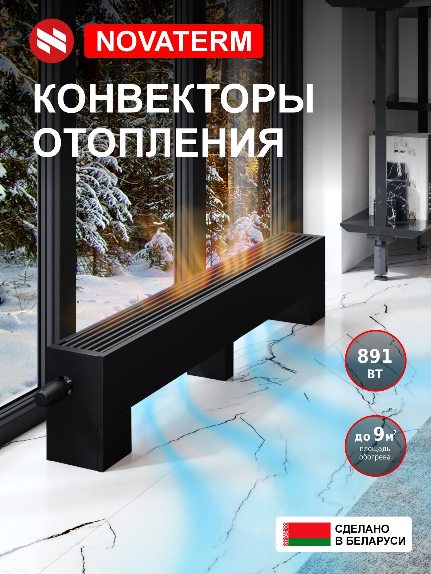 Купить Конвектор напольный Новатерм 148х250х900, водяной, черный, 891Вт, радиатор отопления