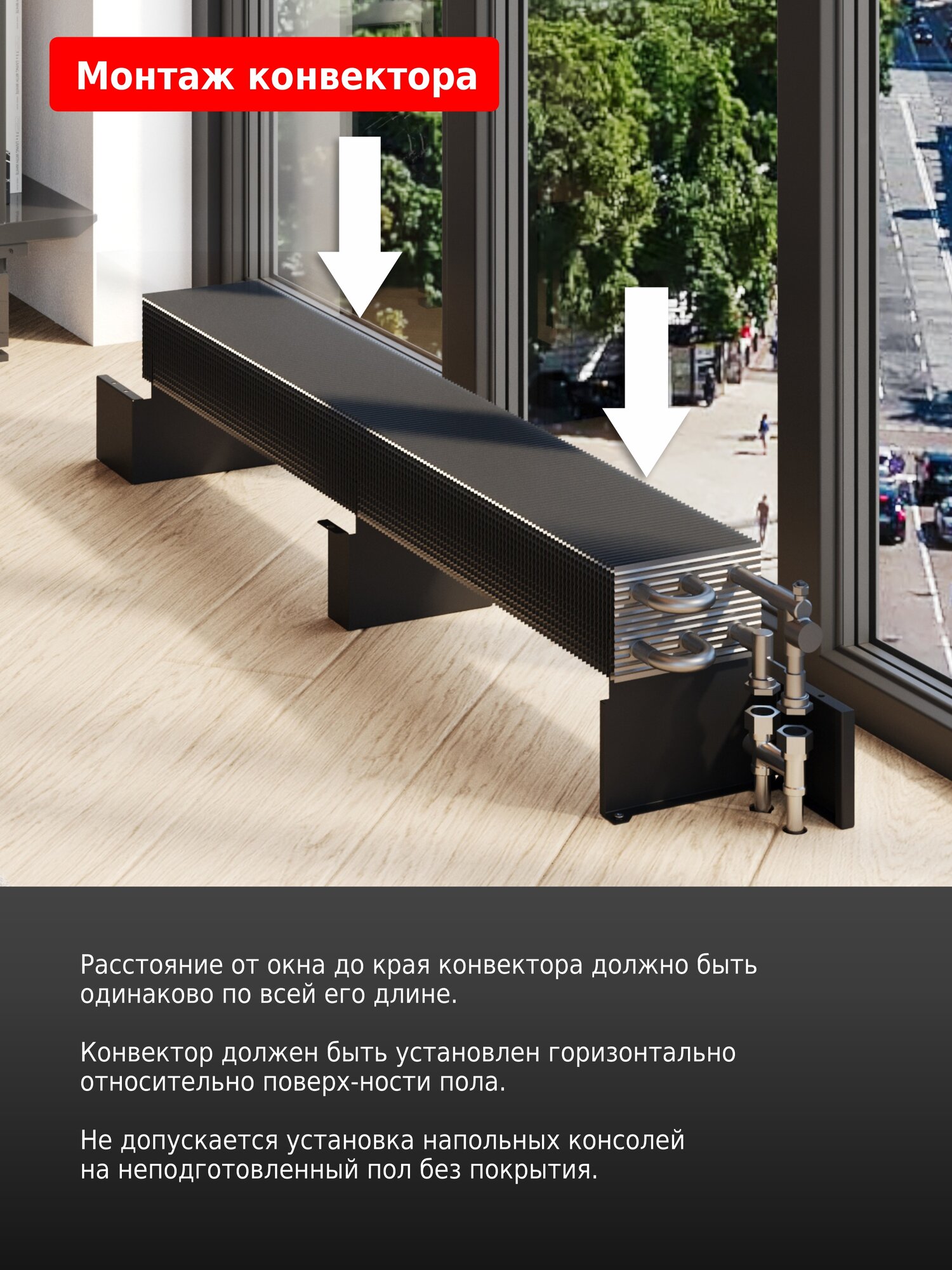 Конвектор напольный Новатерм 148х250х500, водяной, черный, 416Вт, радиатор отопления