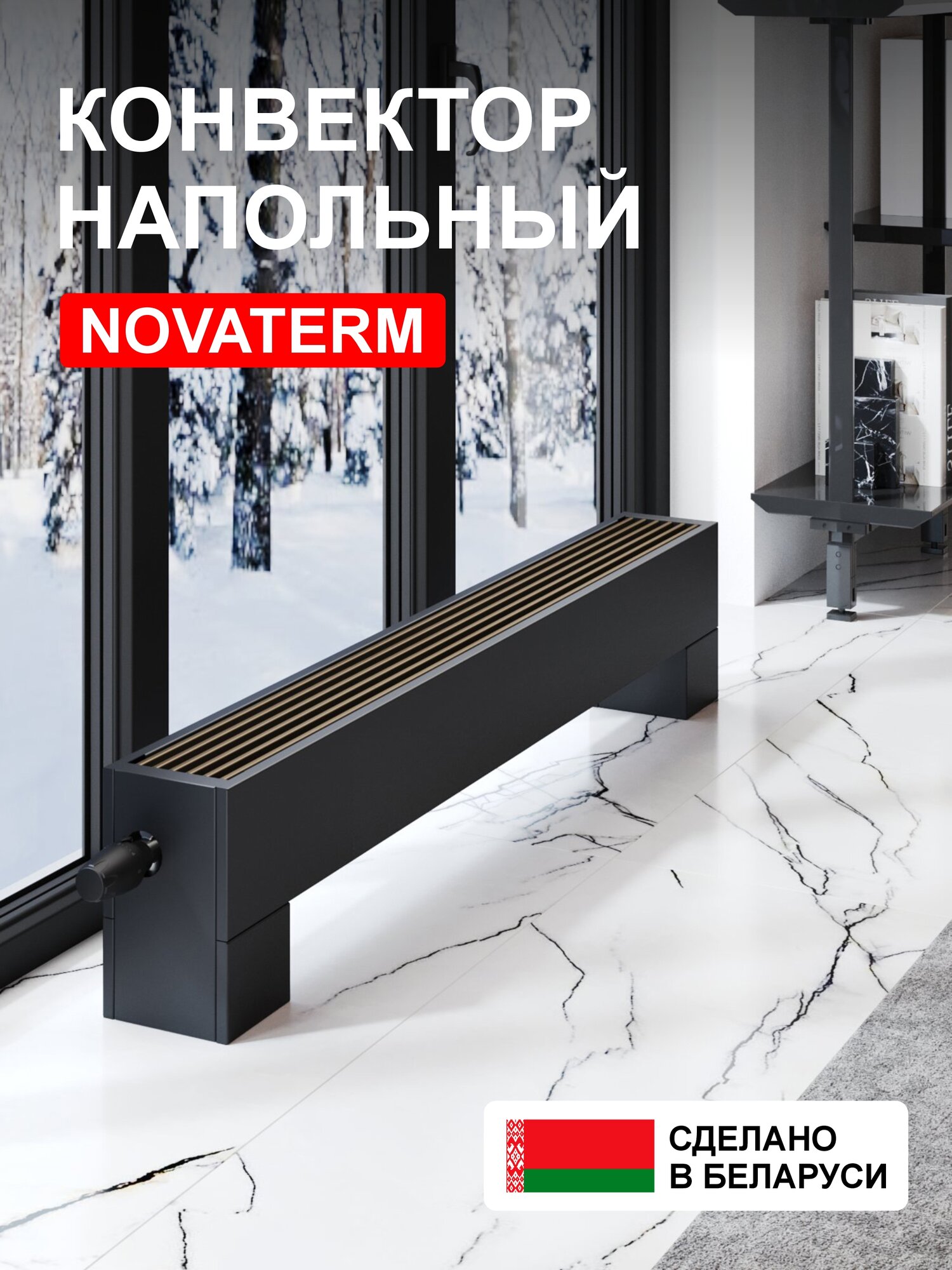 Конвектор напольный Новатерм 148х250х500, водяной, черный, 416Вт, радиатор отопления
