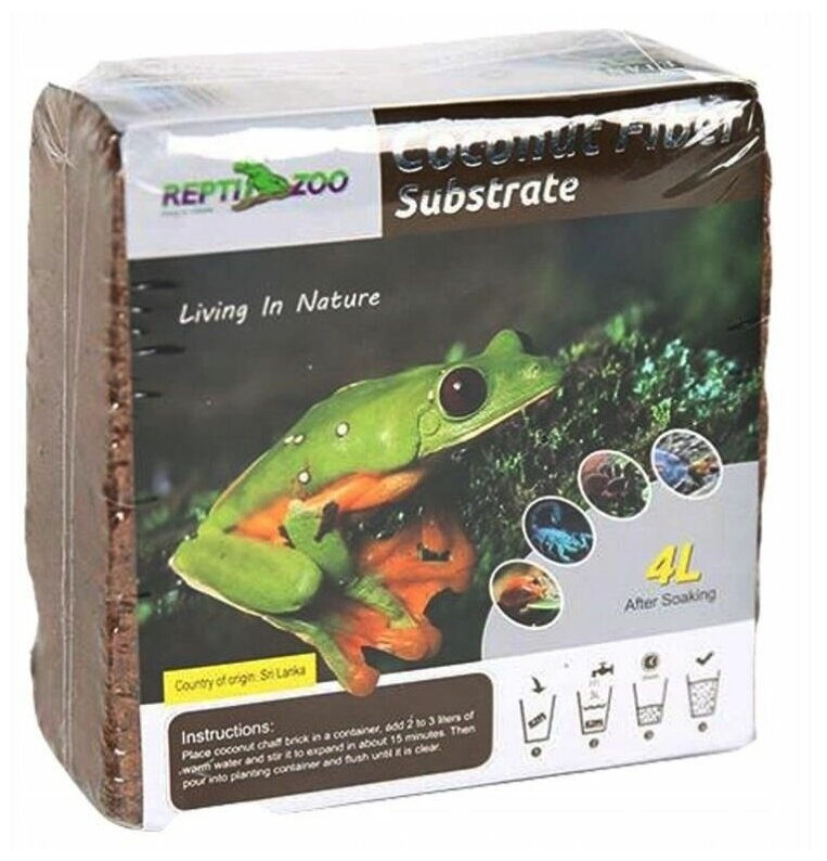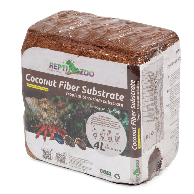 Кокосовый субстрат Repti-Zoo в брикете (8 л) для террариума, улиток, пауков и рассады (16 л)