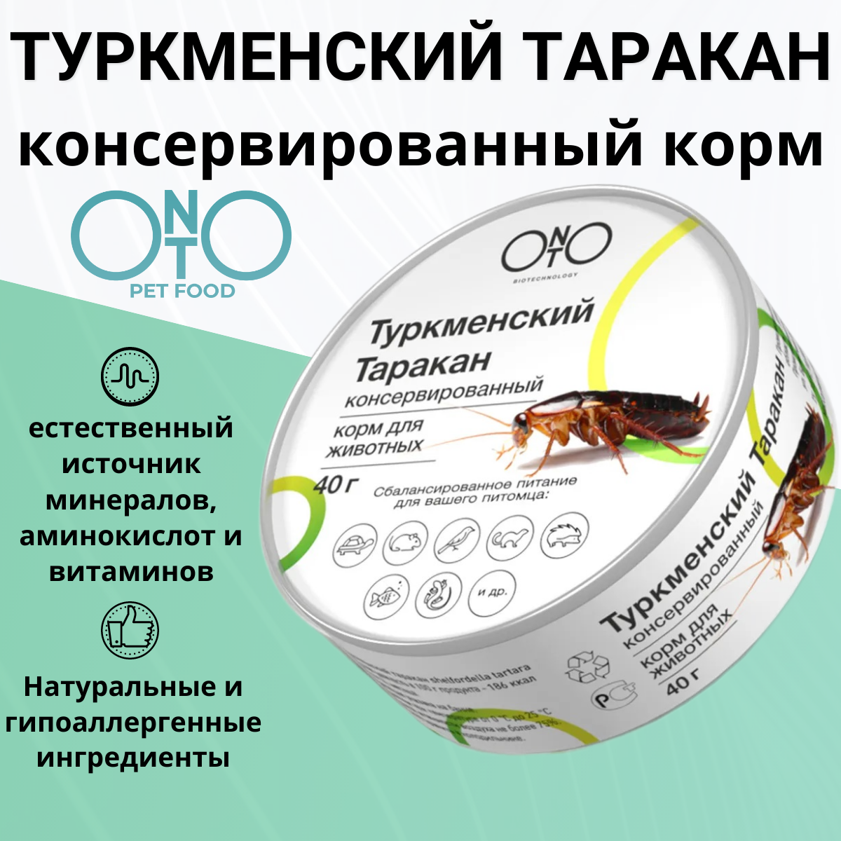 Консервированный корм ONTO для грызунов и птиц, туркменский таракан, 40 г