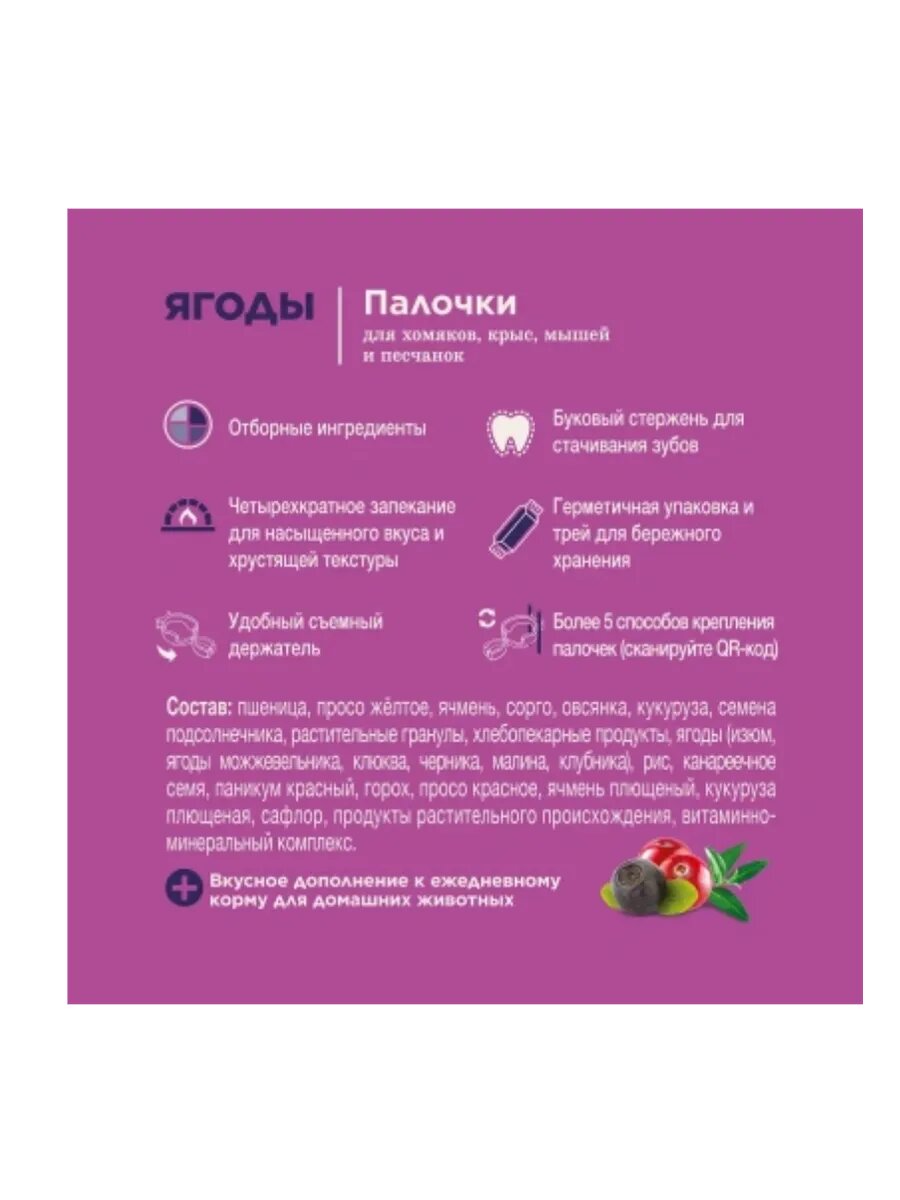 СохранитьЛакомство Little One "Палочки", для грызунов, с ягодами, 2 шт интересное: