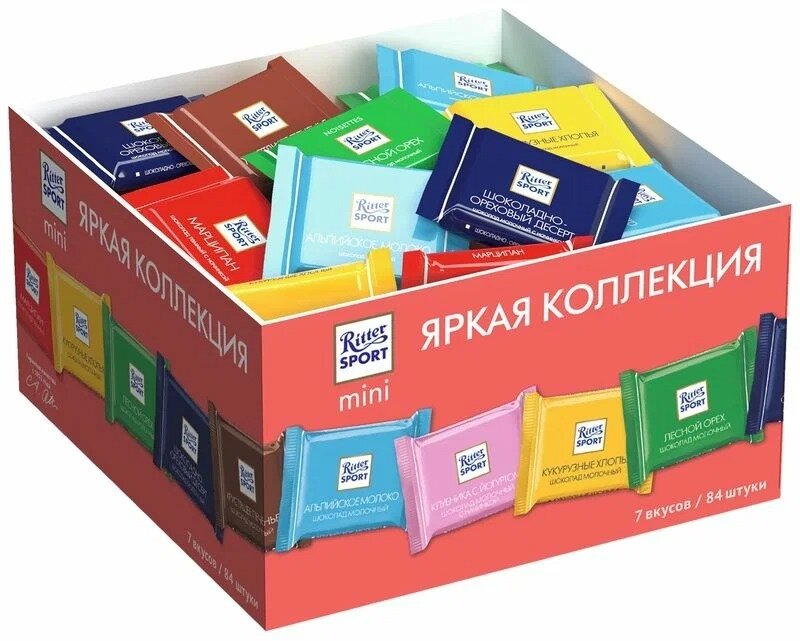 Шоколад Риттер Sport mini Яркая коллекция 84 шт интересное: