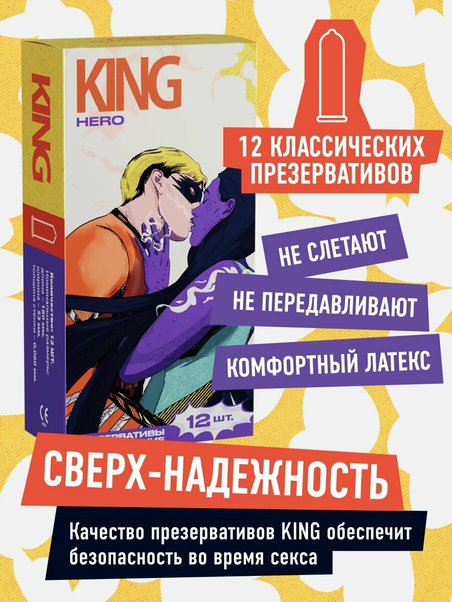Презервативы KING HERO классические из премиального тонкого латекса со смазкой, презервативы 12 штук