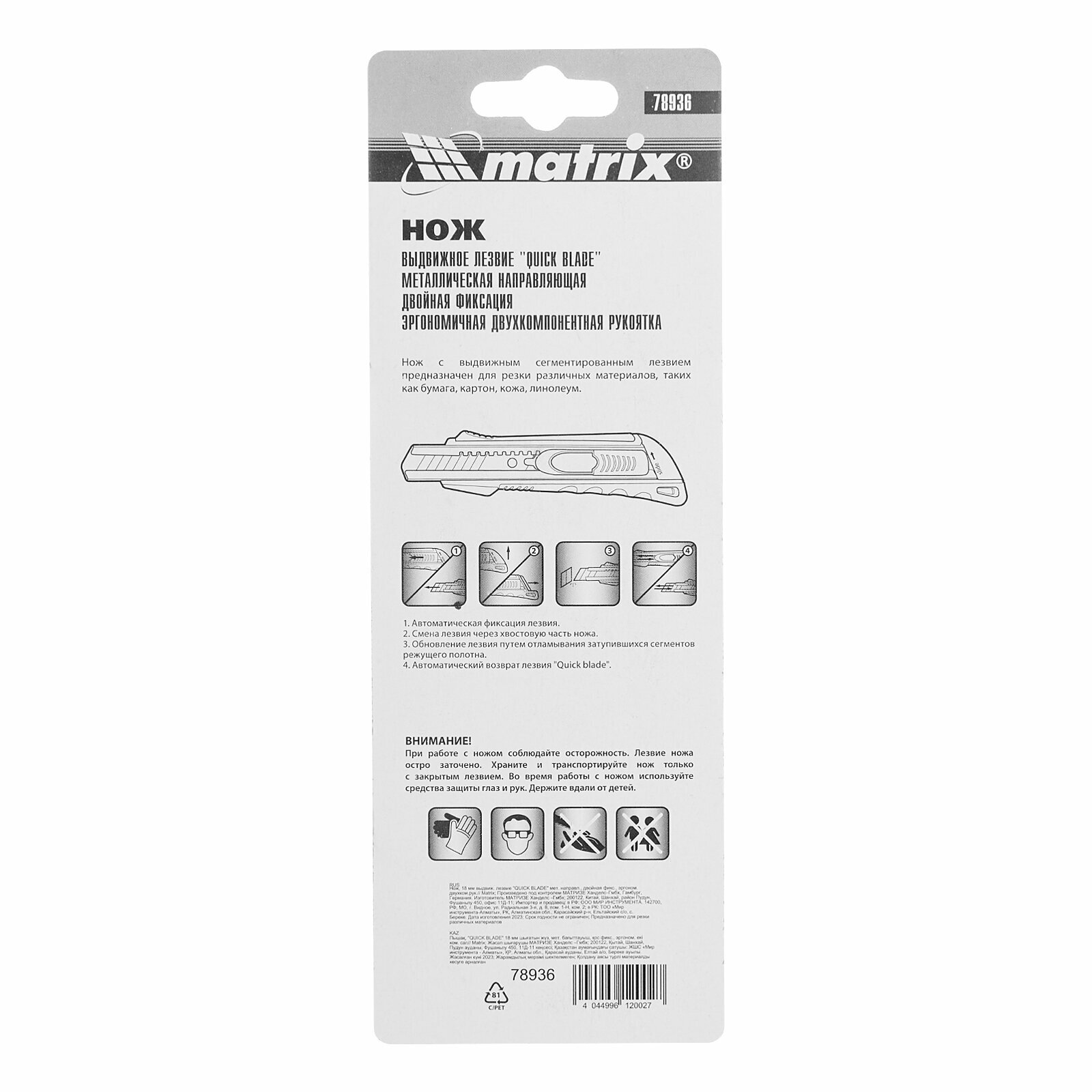 Нож Matrix 18 мм выдвиж. лезвие "QUICK BLADE" мет. направл, двойная фикс, эргоном. двухком. рук. 78936 интересное: