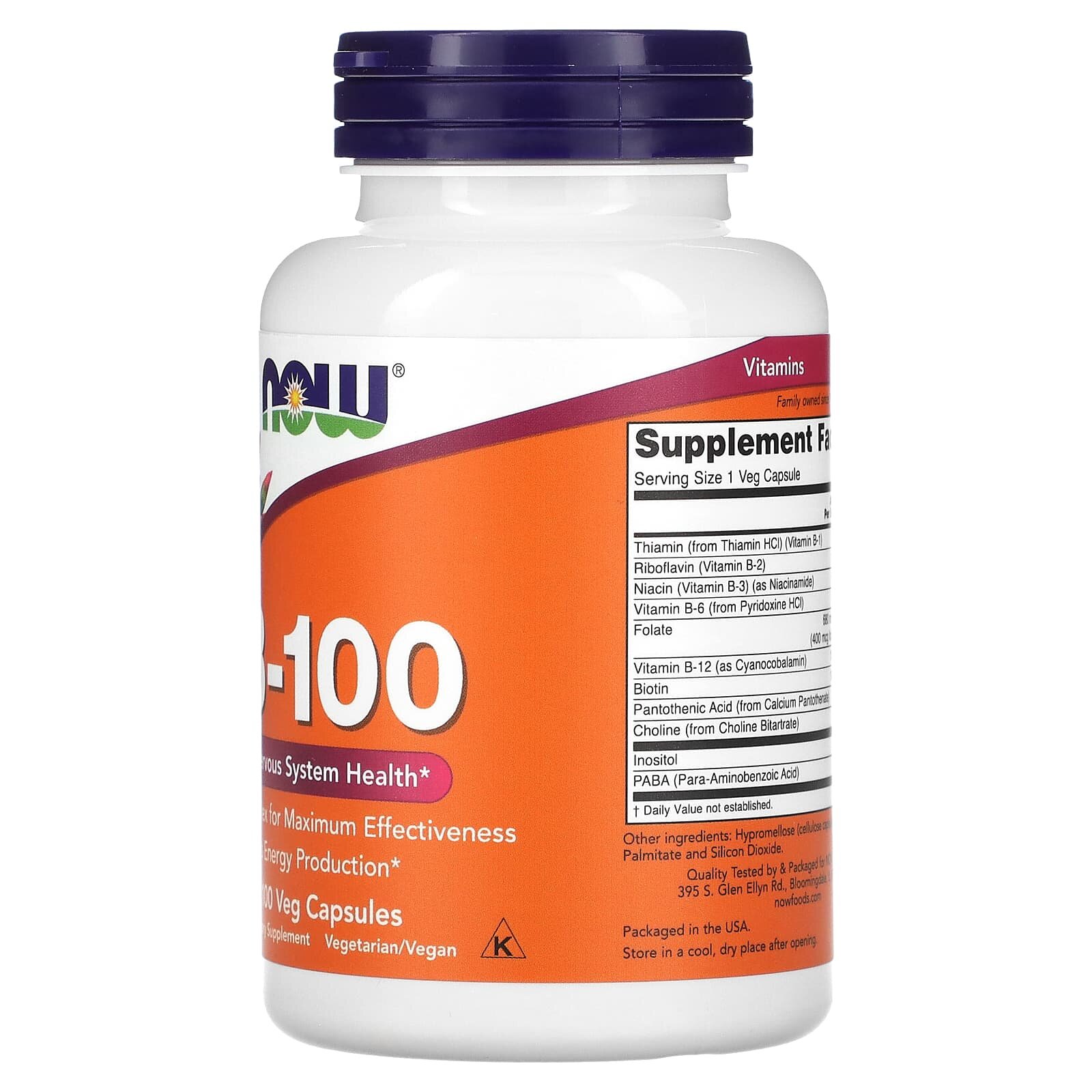 Купить Комплекс витаминов группы Б Now Foods B-100, 100 капсул, для поддержки метаболизма и обмена веществ