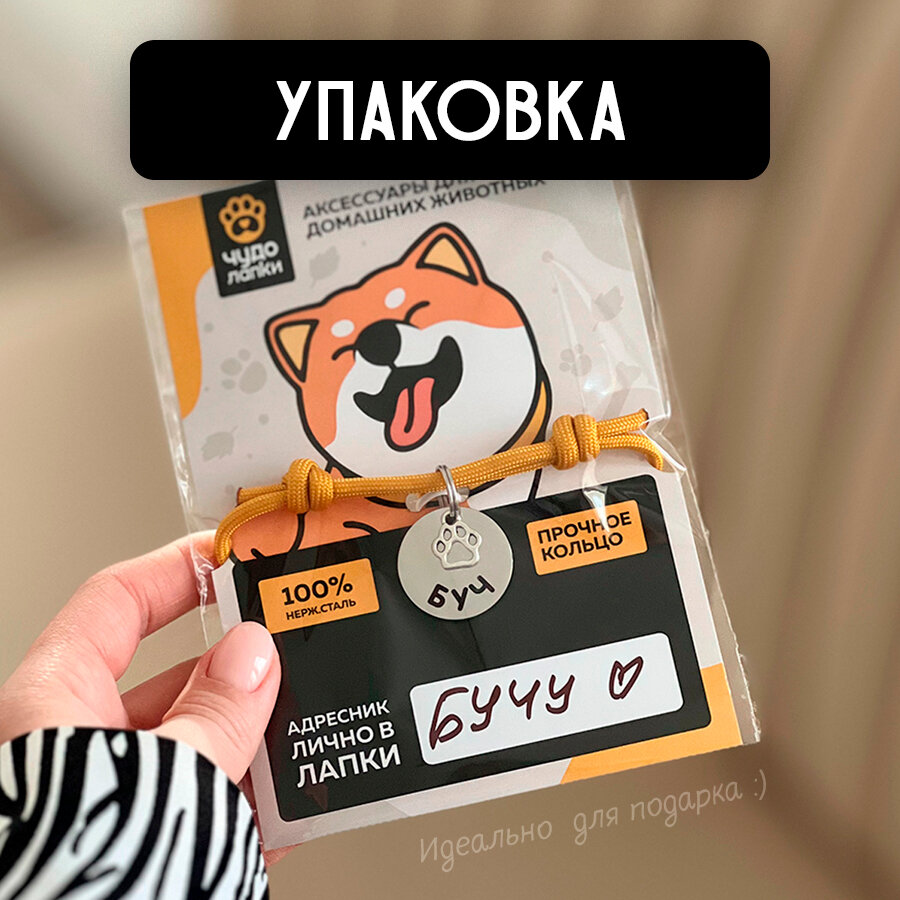 Адресник для собак и кошек с гравировкой. Регулируемый шнурок, нержавеющая сталь, круглый 25 мм. Чудолапки интересное: