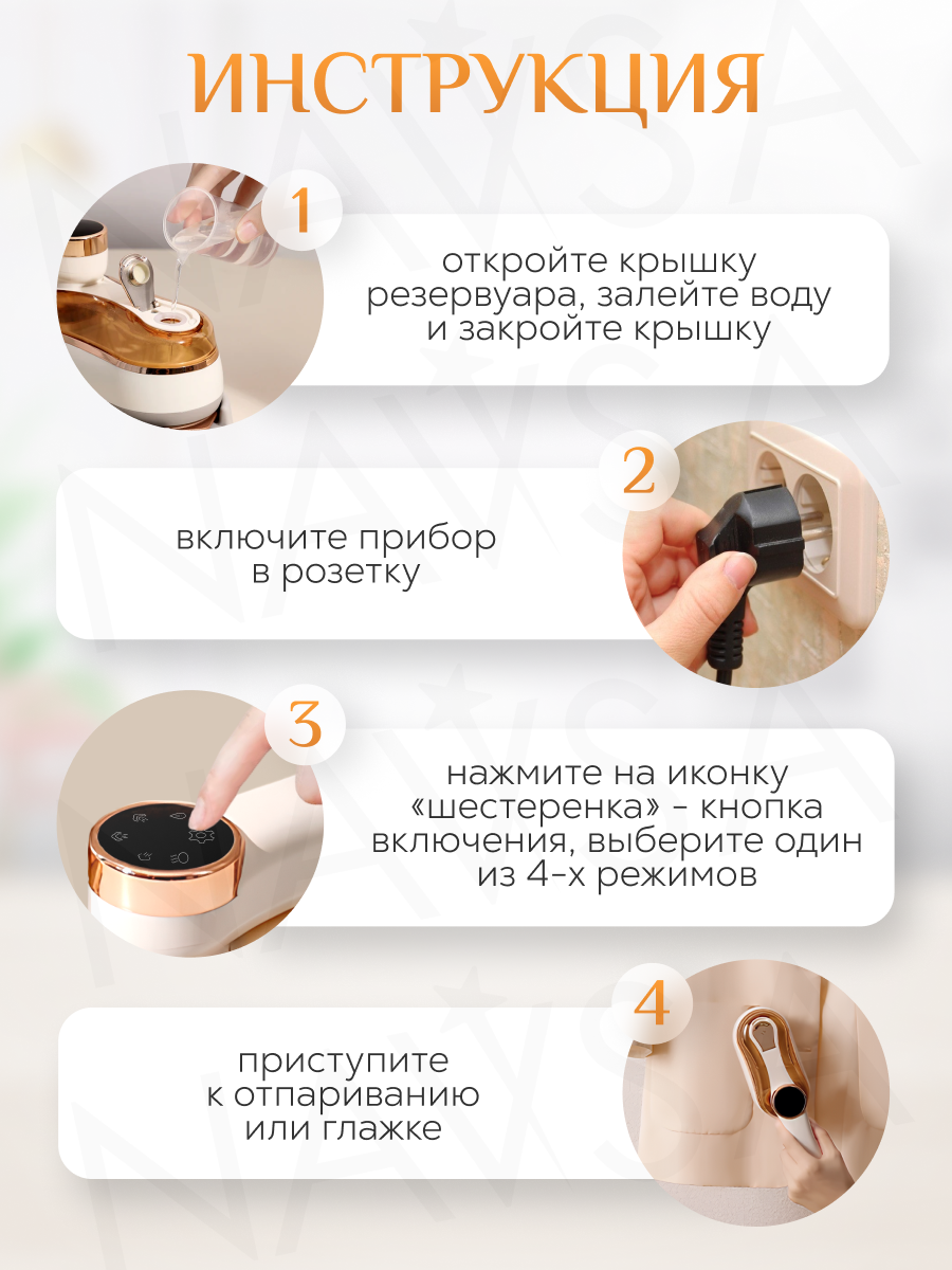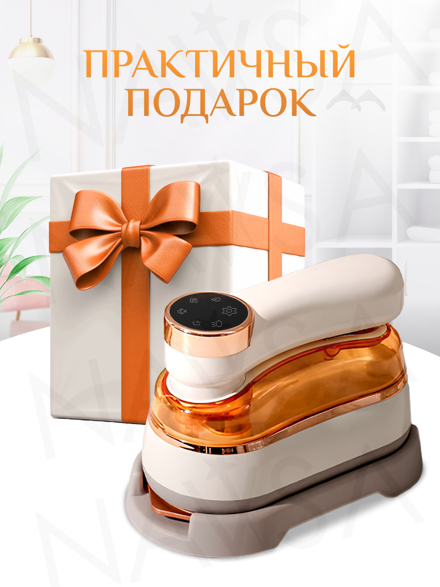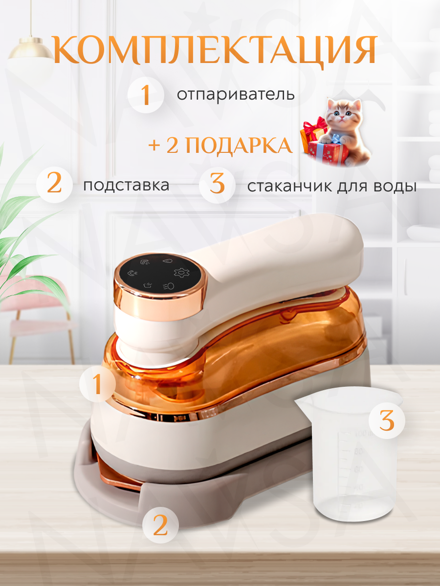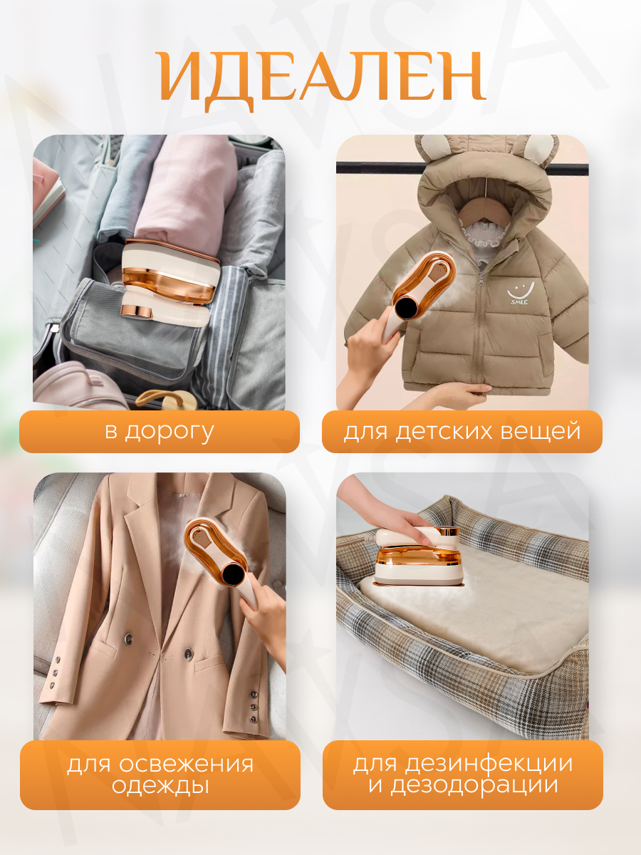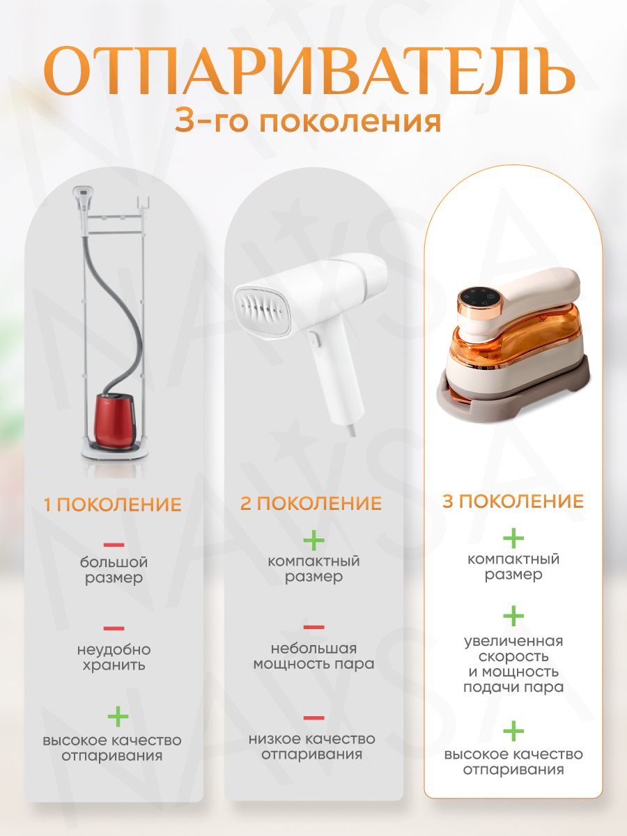 Отпариватель ручной для одежды вертикальный и горизонтальный NAVISA мощный, дорожный мини утюг бежевый