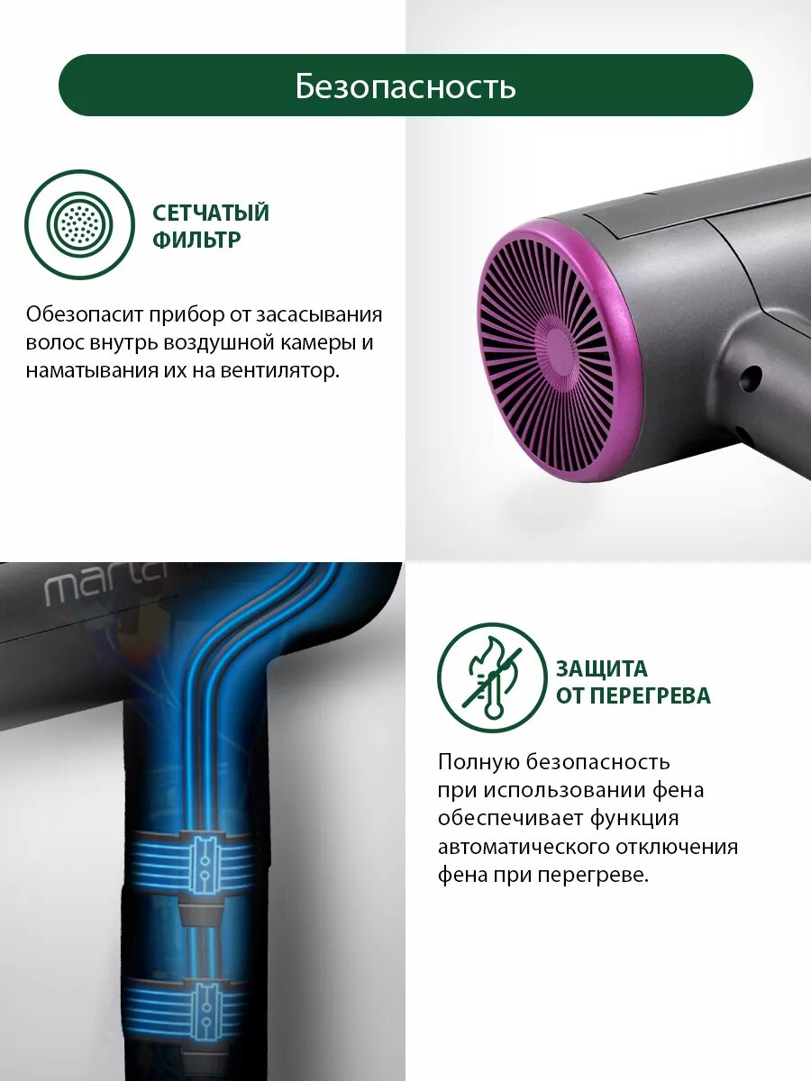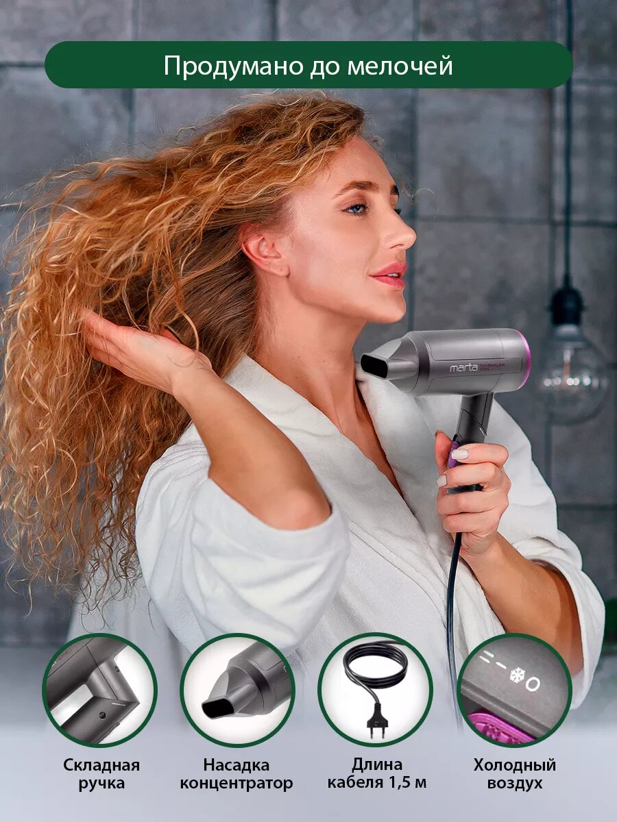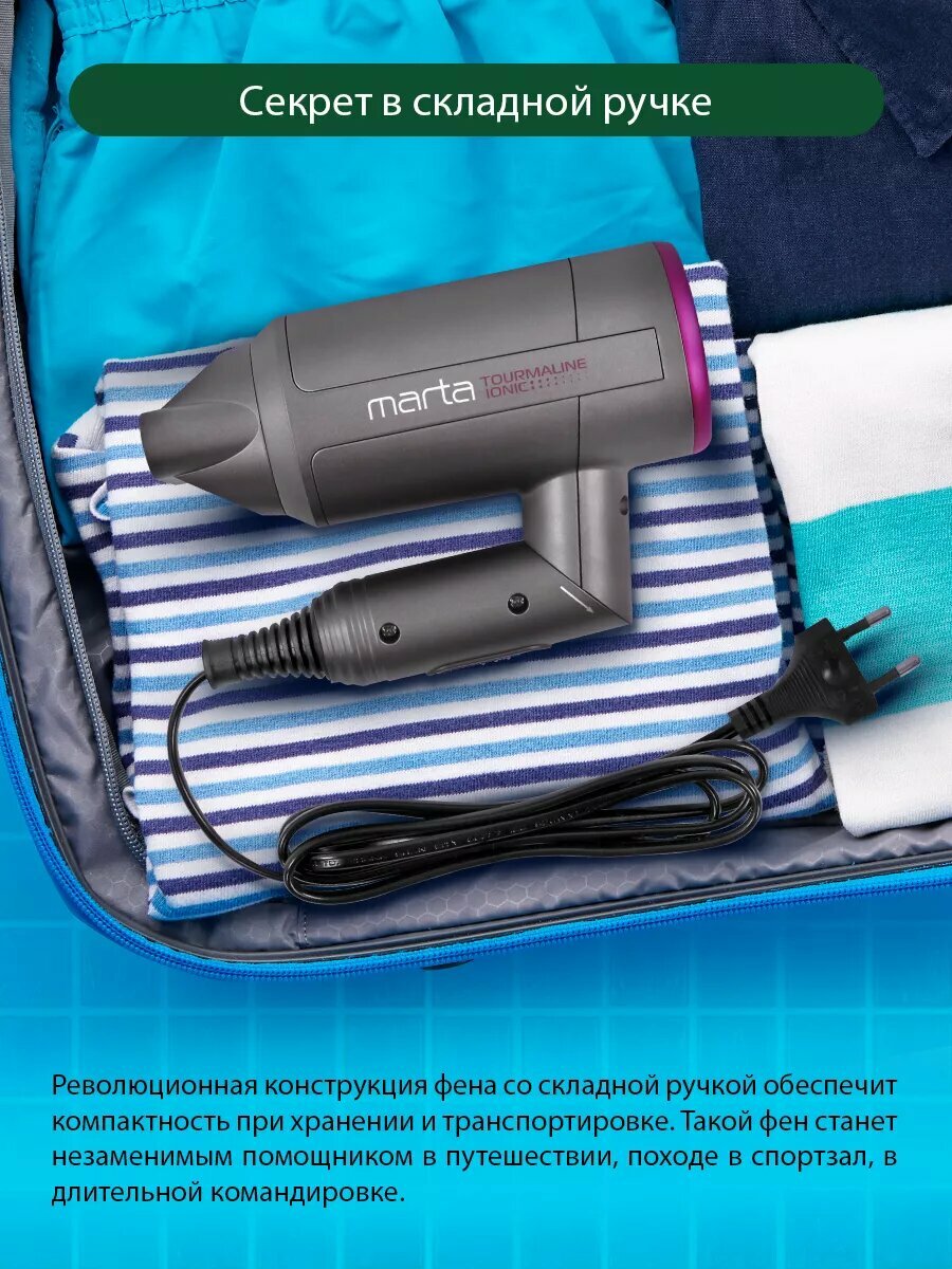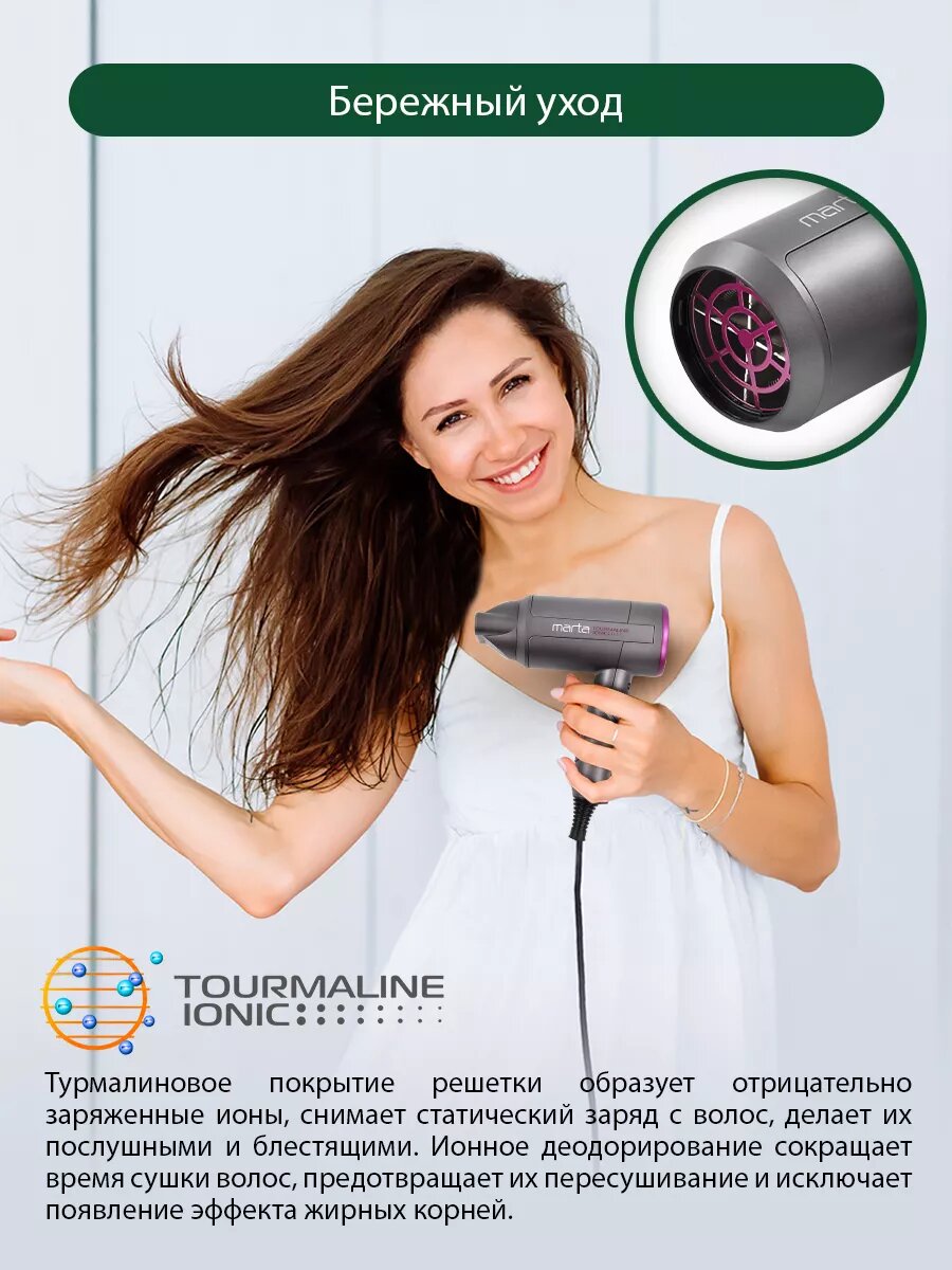 Фен MARTA MT-1266 Технология tourmaline ionic темная фуксия интересное: