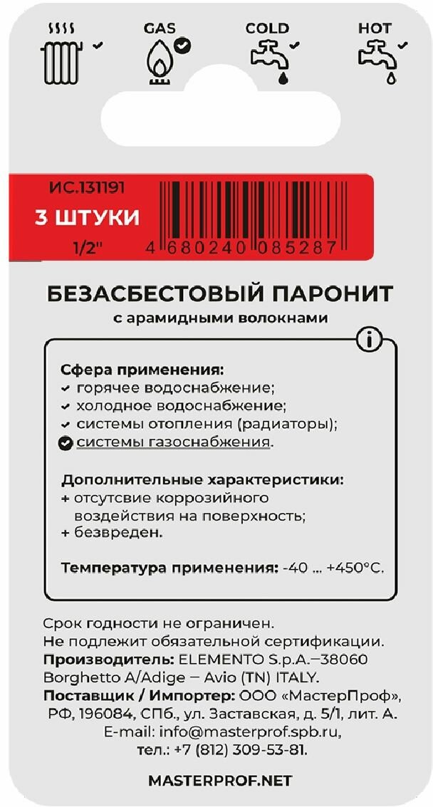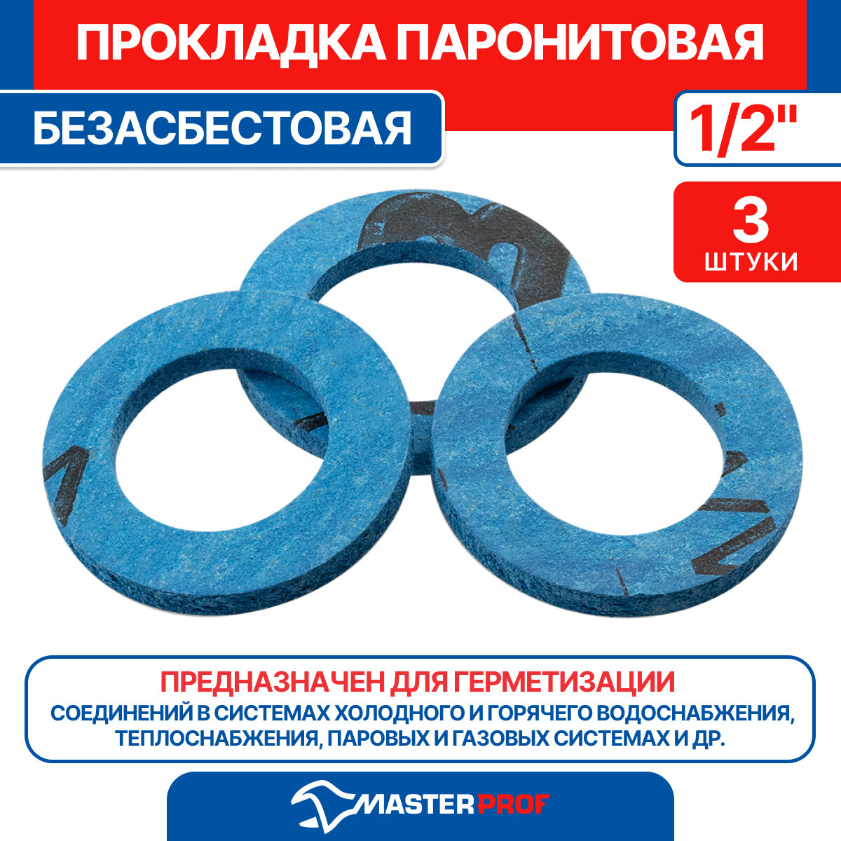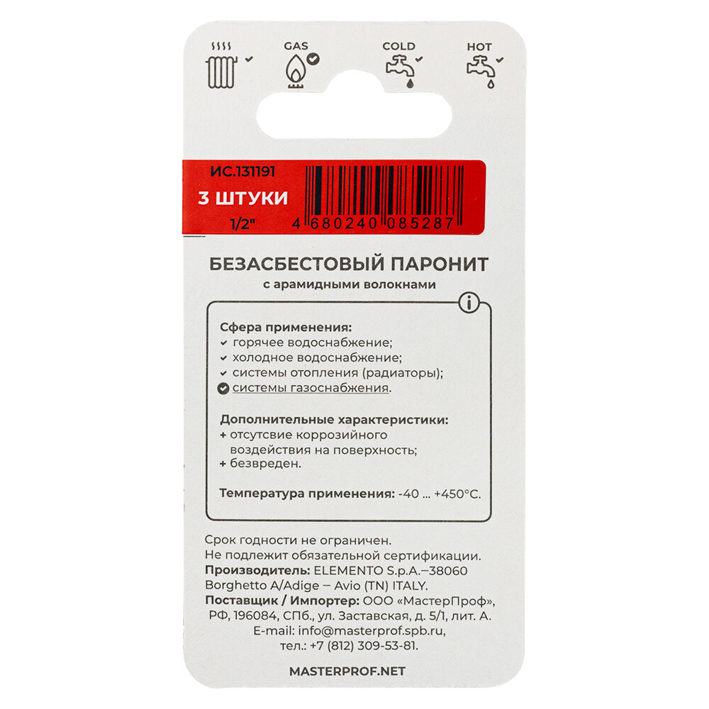 Прокладка паронитовая MasterProf безасбестовая MPF 1/2" 3 шт интересное: