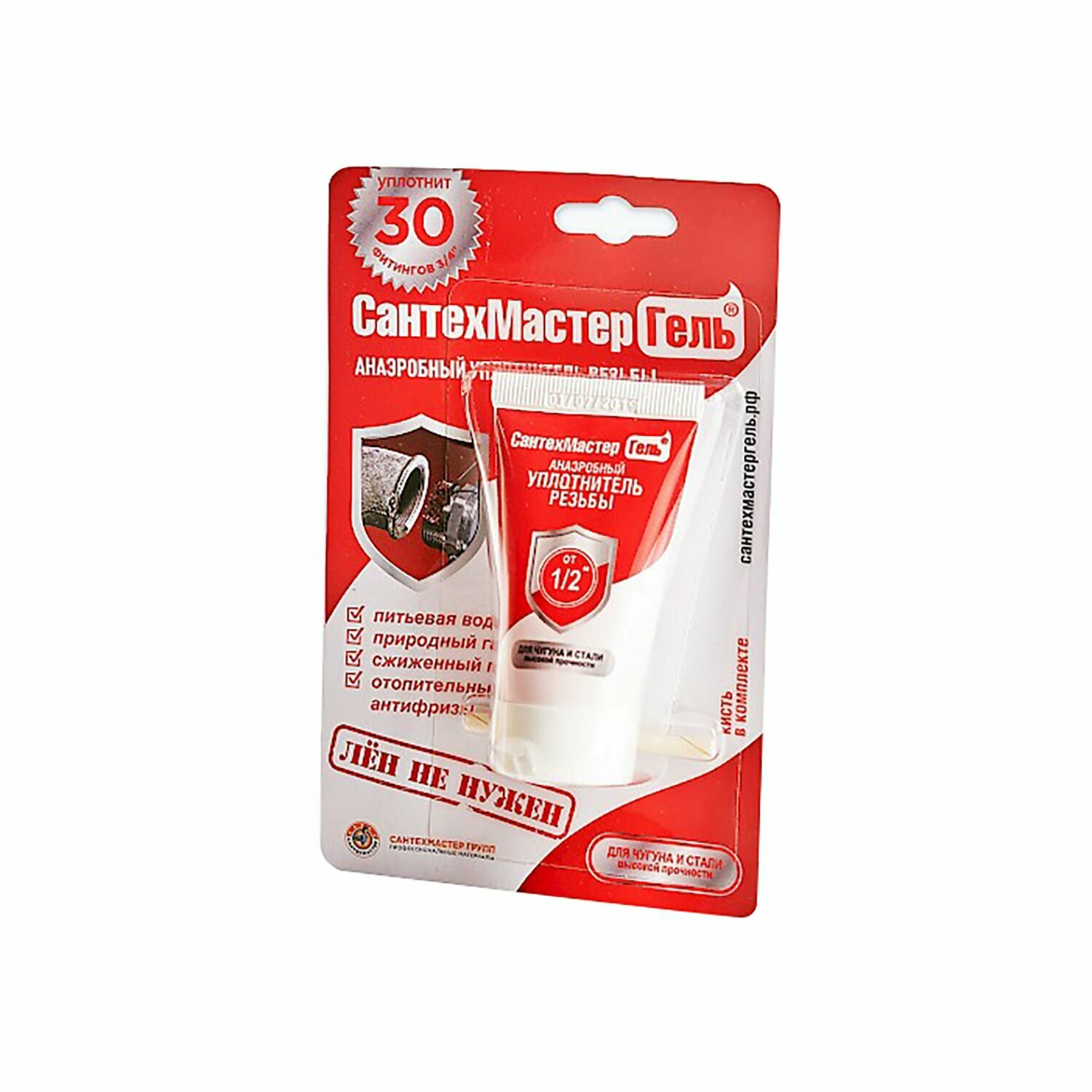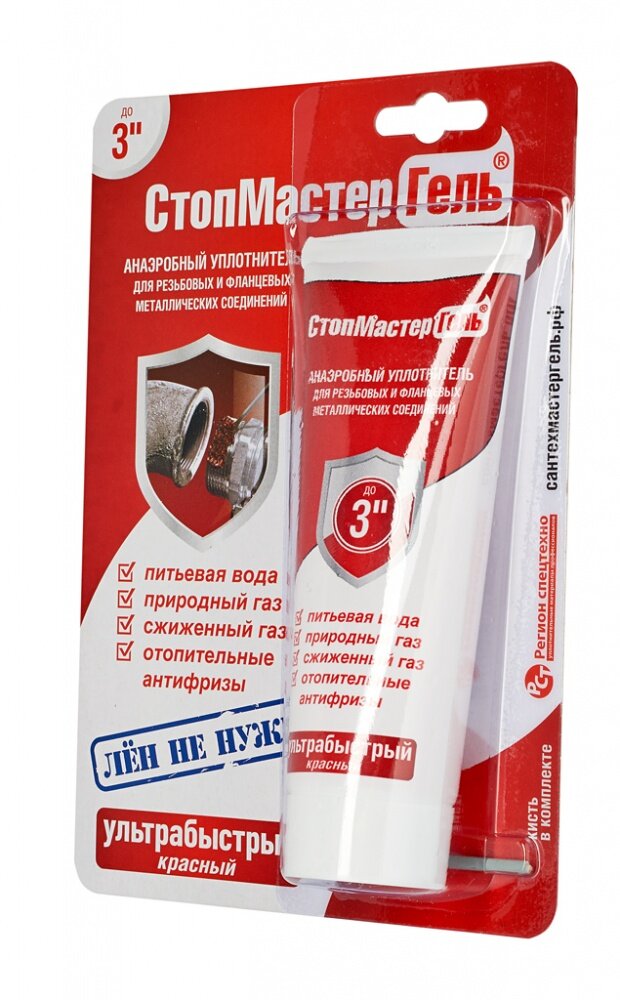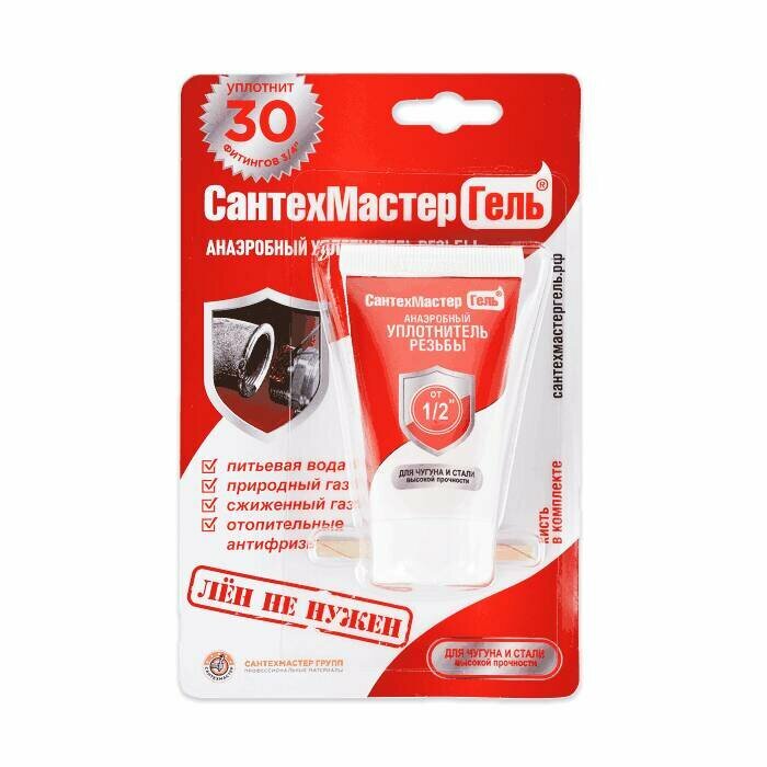 Герметик анаэробный, 35 г Сантехмастер Гель, красный (5 мин) для воды, газа, топлива - сантехнический уплотнитель для резьбовых соединений до 3"