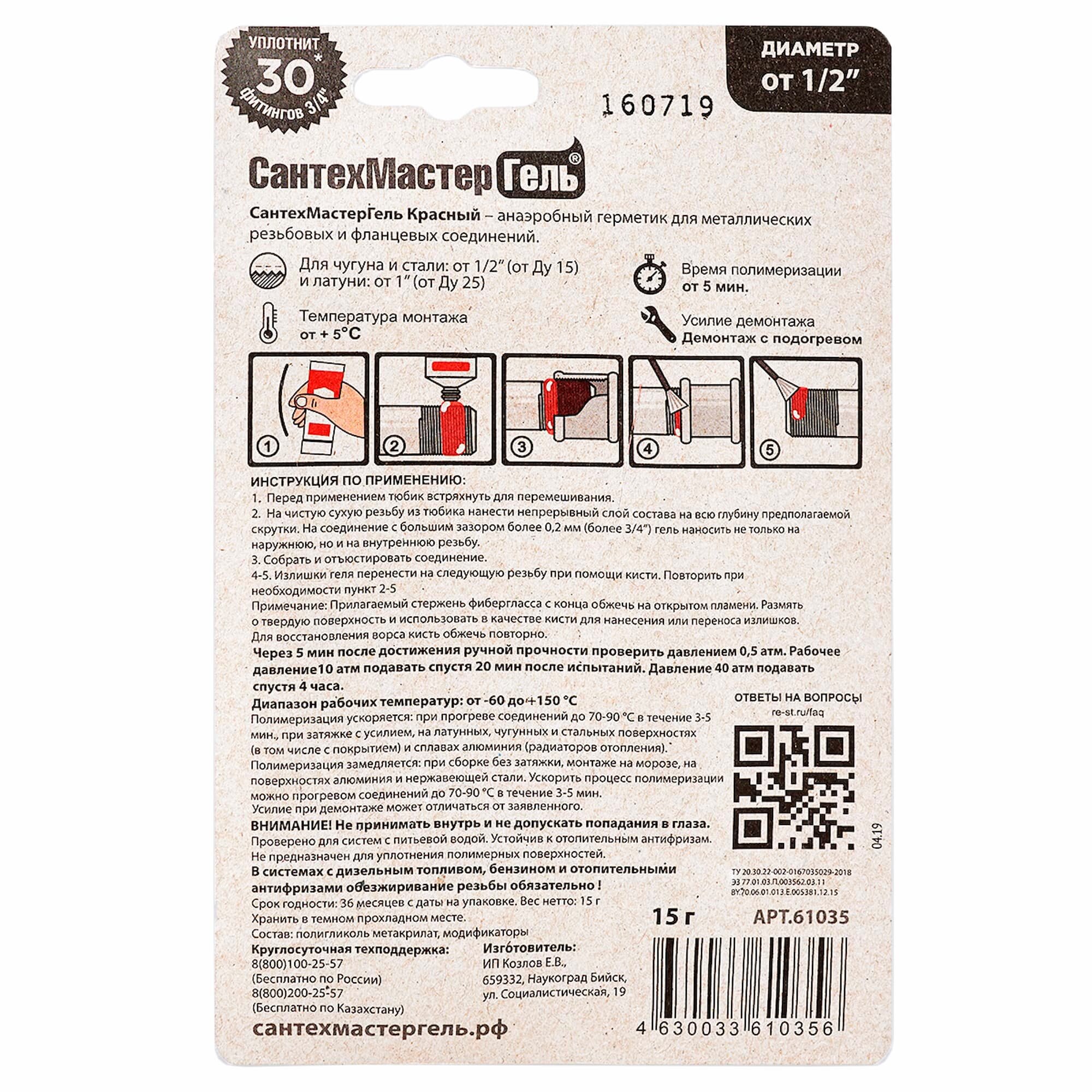Ниже Вы можете прочитать отзывы на Гель анаэробный для резьбовых и фланцевых соединений тюбик 15гр красный СантехмастерГель 04021, ознакомится с подробными характеристиками, посмотреть интересные обзоры и фотографии на Гель анаэробный для резьбовых и фланцевых соединений тюбик 15гр красный СантехмастерГель 04021.