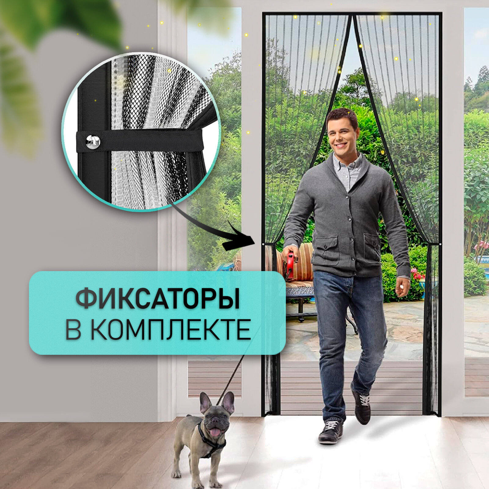Москитная сетка на дверь на магнитах для защиты от насекомых, 100×210 см интересное: