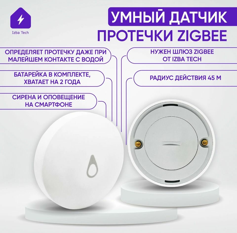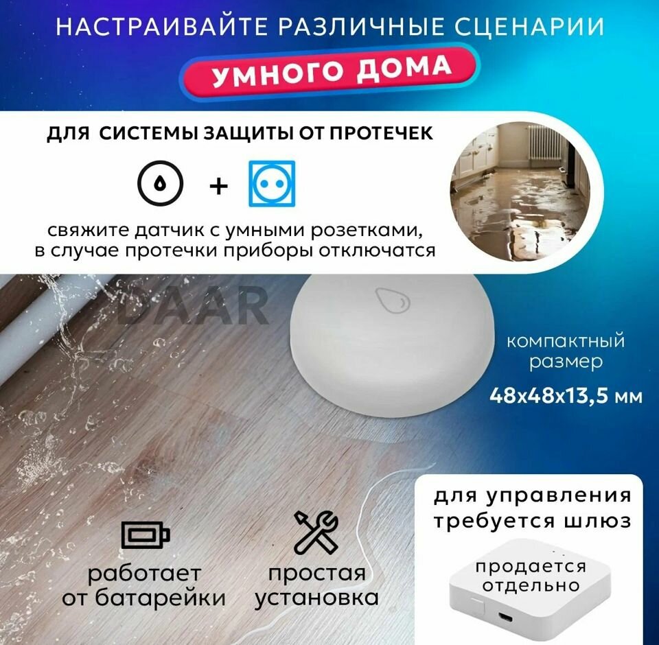 Умный , датчик протечки воды . Zigbee . Беспроводной.+Батарейка интересное: