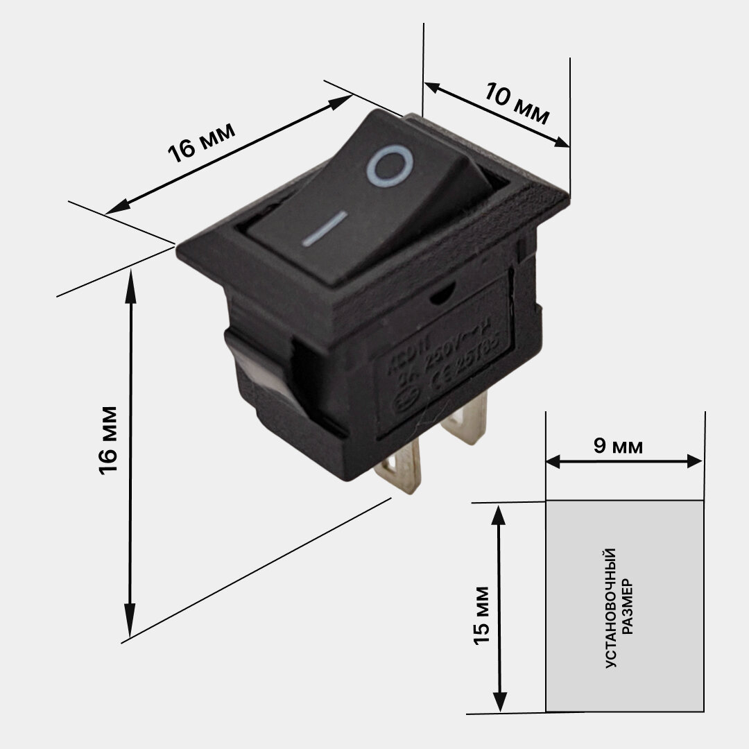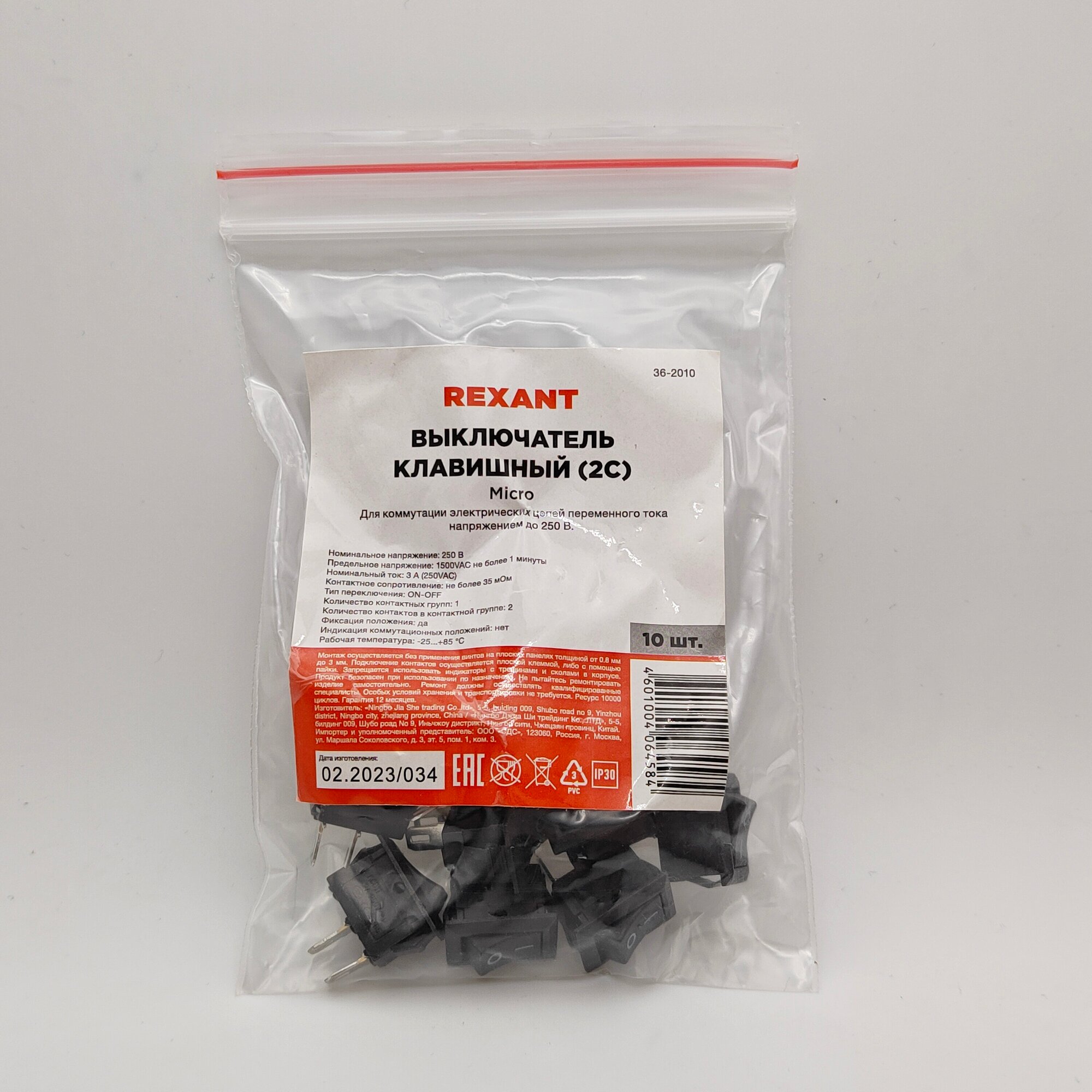 10 шт! Выключатель клавишный KCD5 250В 3А (2с) ON-OFF Micro черный Rexant интересное: