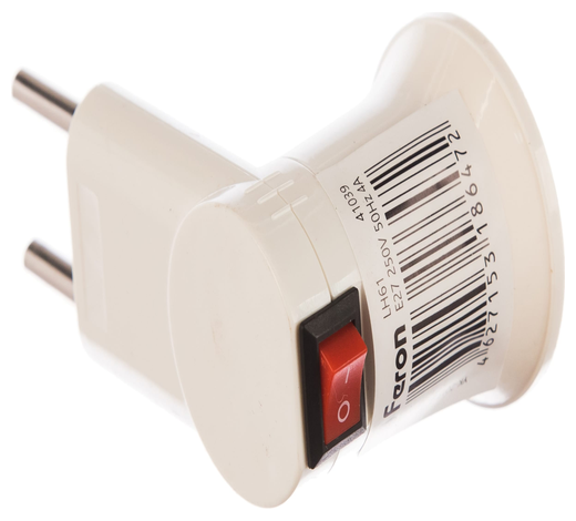 Патрон-переходник с выключателем FERON с E27 на розетку, 230V, пластик, белый, 40х60мм, LH61 41039