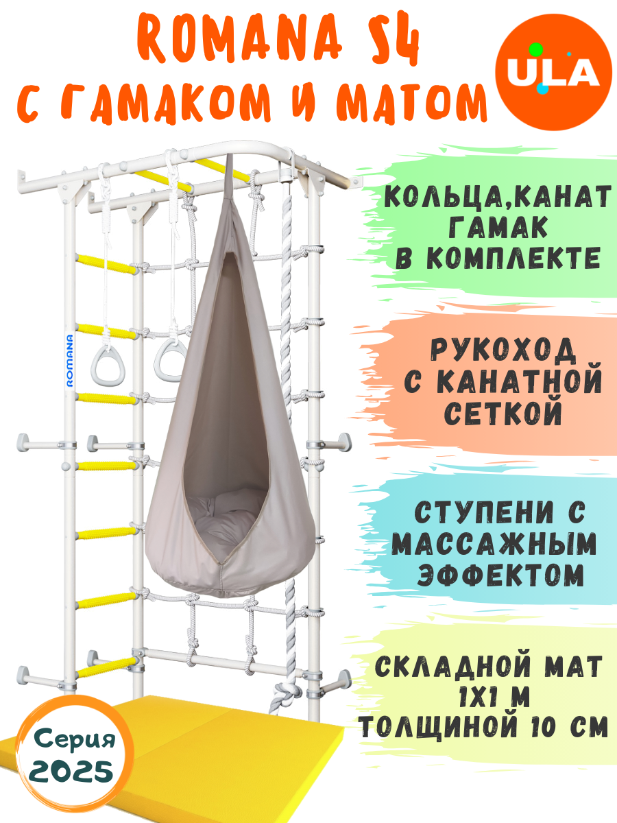 СохранитьШведская стенка ROMANA S4 с гамаком и матом 1х1 м, цвет прованс-бежевый интересное: