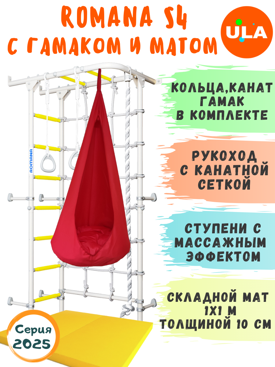 СохранитьШведская стенка ROMANA S4 с гамаком и матом 1х1 м, цвет прованс-красный интересное: