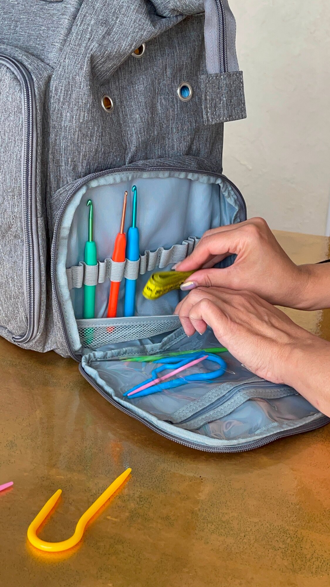 Рюкзак для рукоделия, проектная сумка для вязания, серая, Bina., размер 43 х 28 х 24 см.