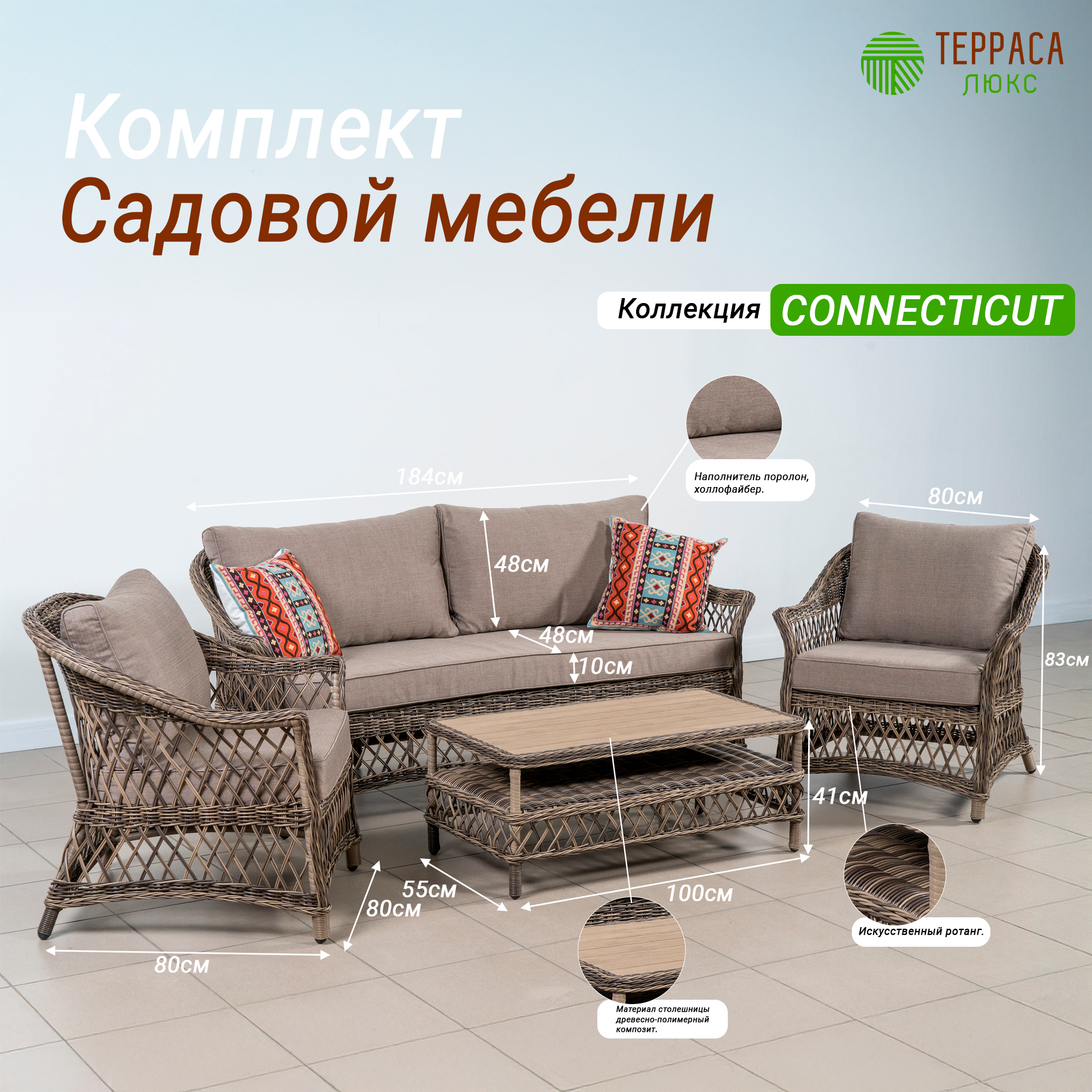 Ниже Вы можете прочитать отзывы на Плетеная мебель Connecticut, искусственный ротанг, коричневая, 184x80x83 см (софа + 2 кресла + стол кофейный), ознакомится с подробными характеристиками, посмотреть интересные обзоры и фотографии на Плетеная мебель Connecticut, искусственный ротанг, коричневая, 184x80x83 см (софа + 2 кресла + стол кофейный).