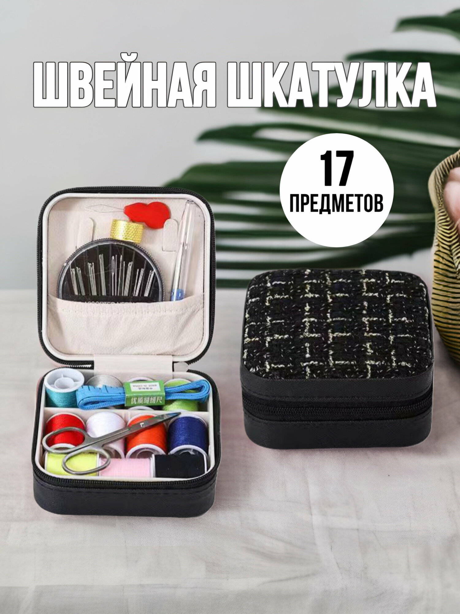 Купить Швейный набор шкатулка на молнии в твердом стильном кейсе (Чёрный)