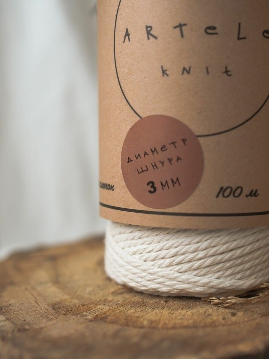 Хлопковый шнур Artele Knit для рукоделия и макраме, 3мм, 100м. интересное: