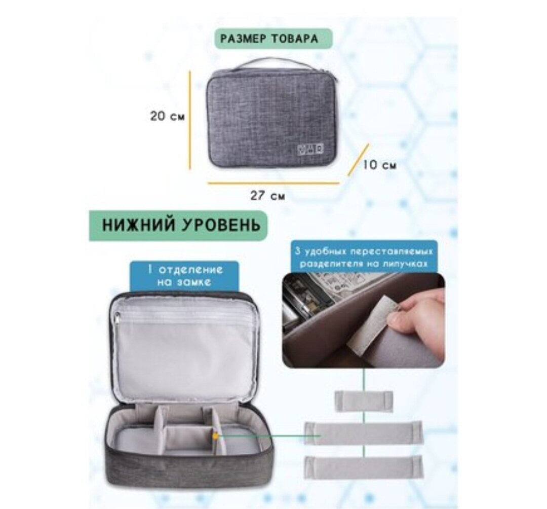| Дополнительная информация | Тип: органайзер для косметики, зарядок и проводов, мелочей, дорожный |