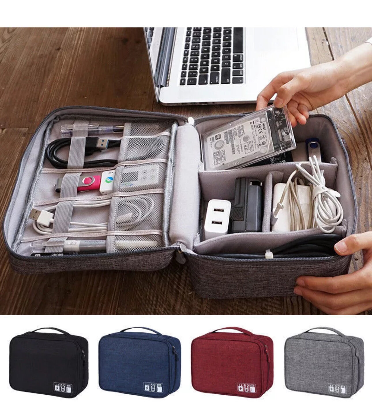 Органайзер для проводов и аксессуаров Серый GR/ Органайзер для кабелей / Сумка для проводов