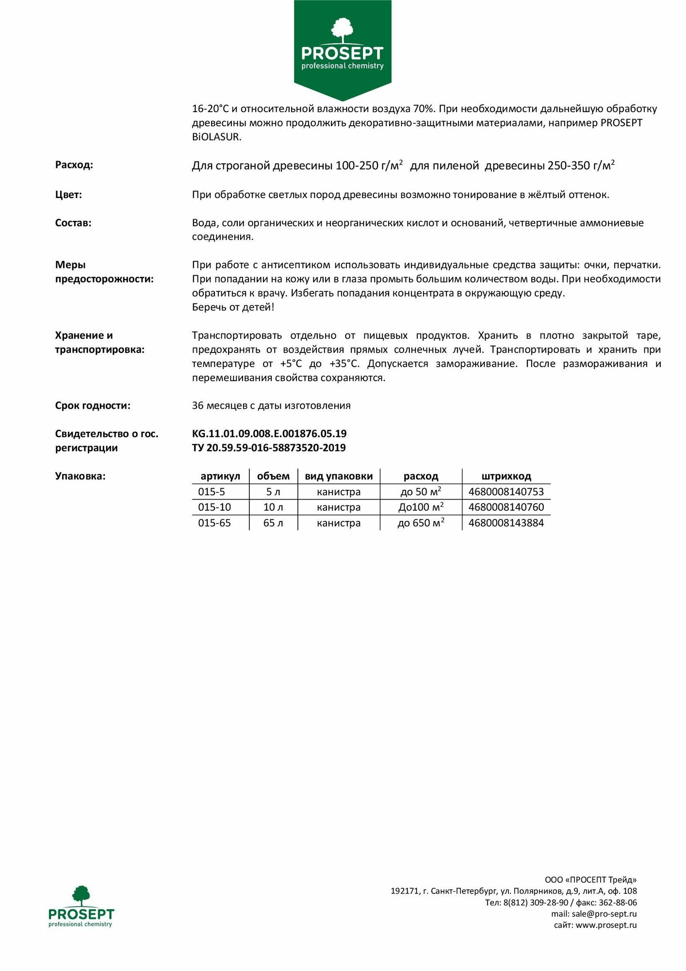 | Дополнительная информация | при обработке древесины антисептиком возможно легкое тонирование |