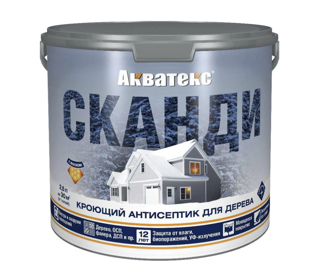 Кроющий антисептик Акватекс Сканди, база C, 2,5л