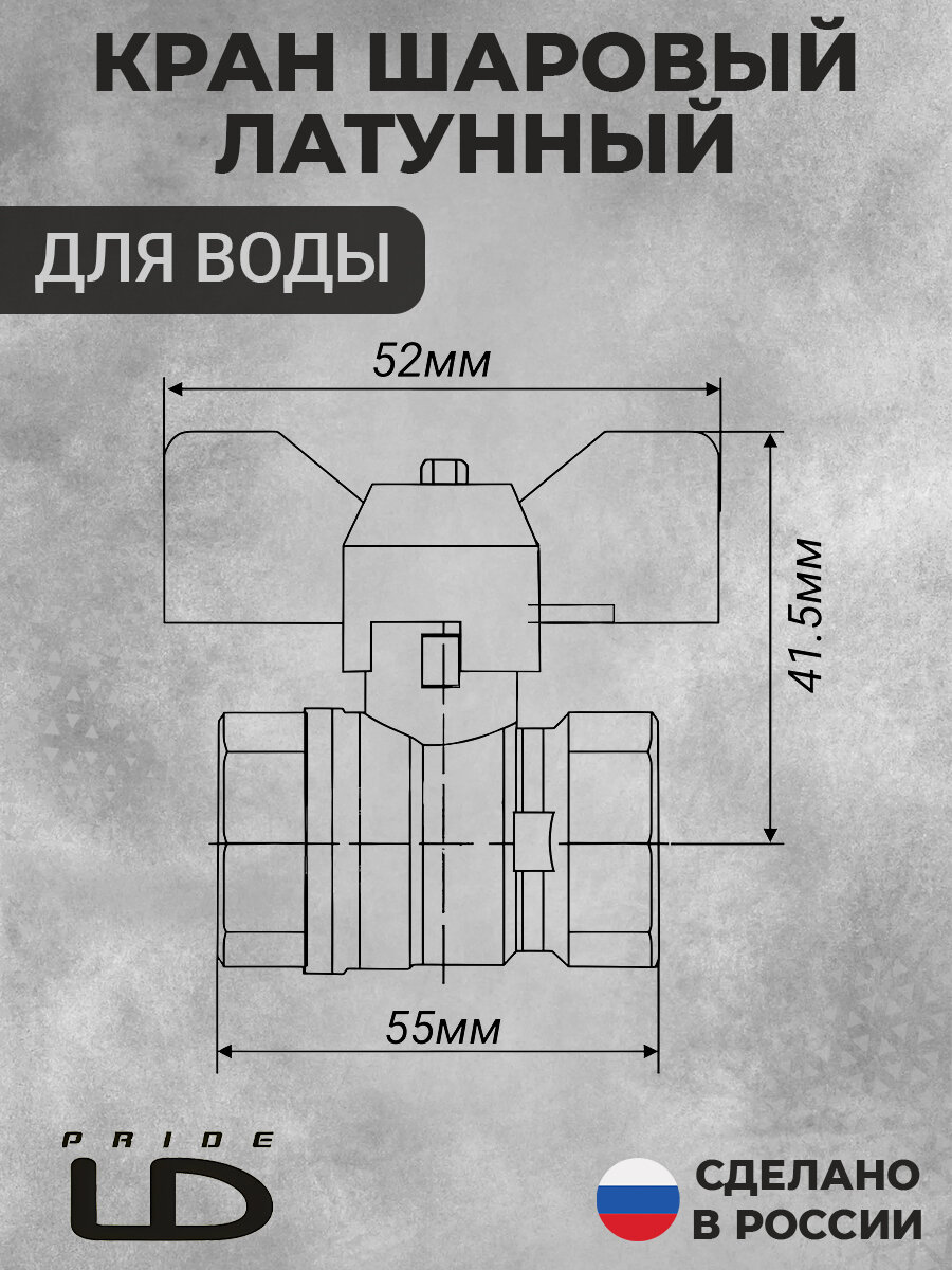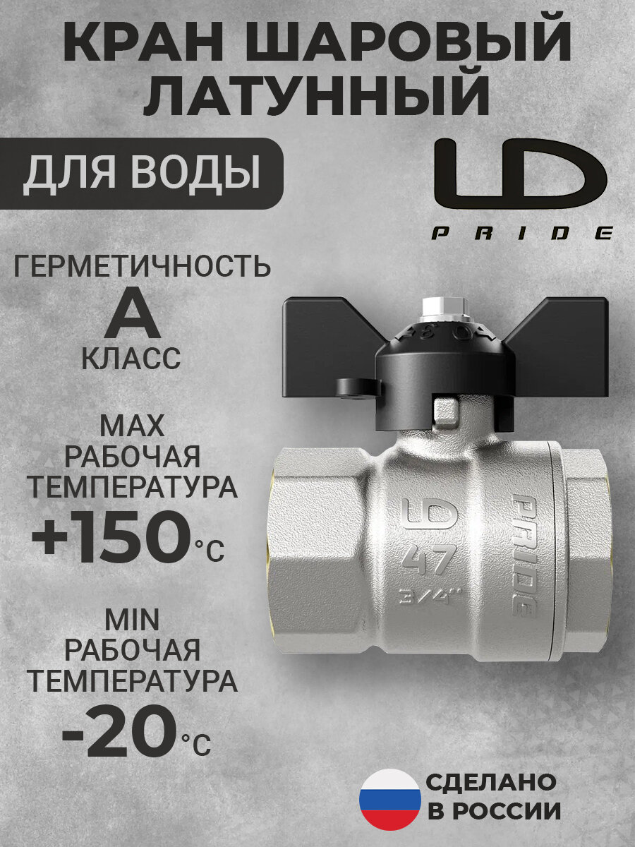 LD Pride Кран шаровой латунный 47.20.B-B.Б, вн./вн.резьба, ручка-бабочка, 3/4" 47.20.B-B.Б