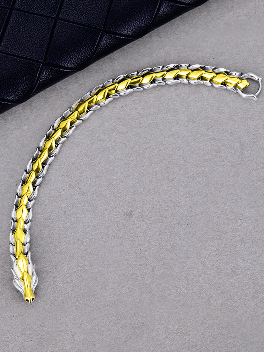 Браслет мужской "Дракон", серебристо-золотой