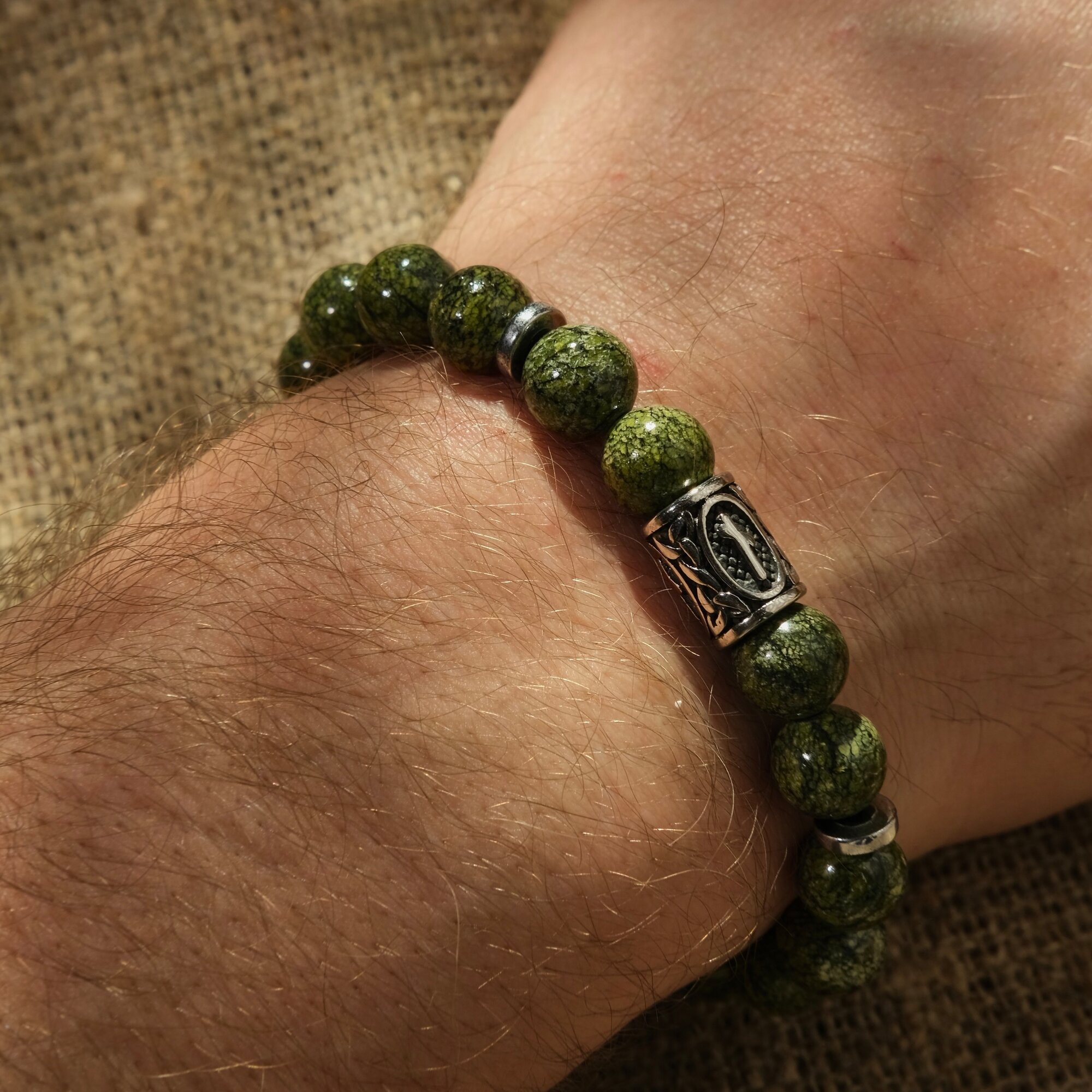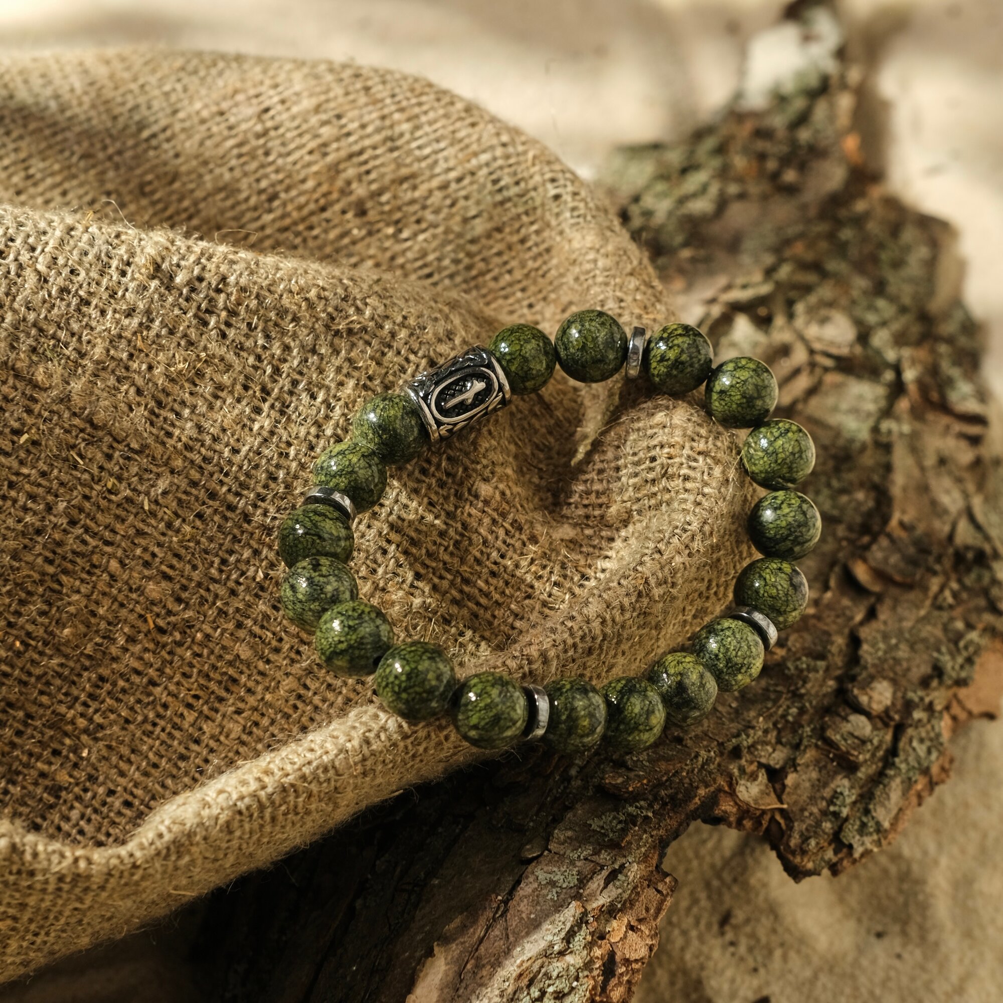 Мужской браслет "Рунический браслет Сила" с натуральным черным агатом